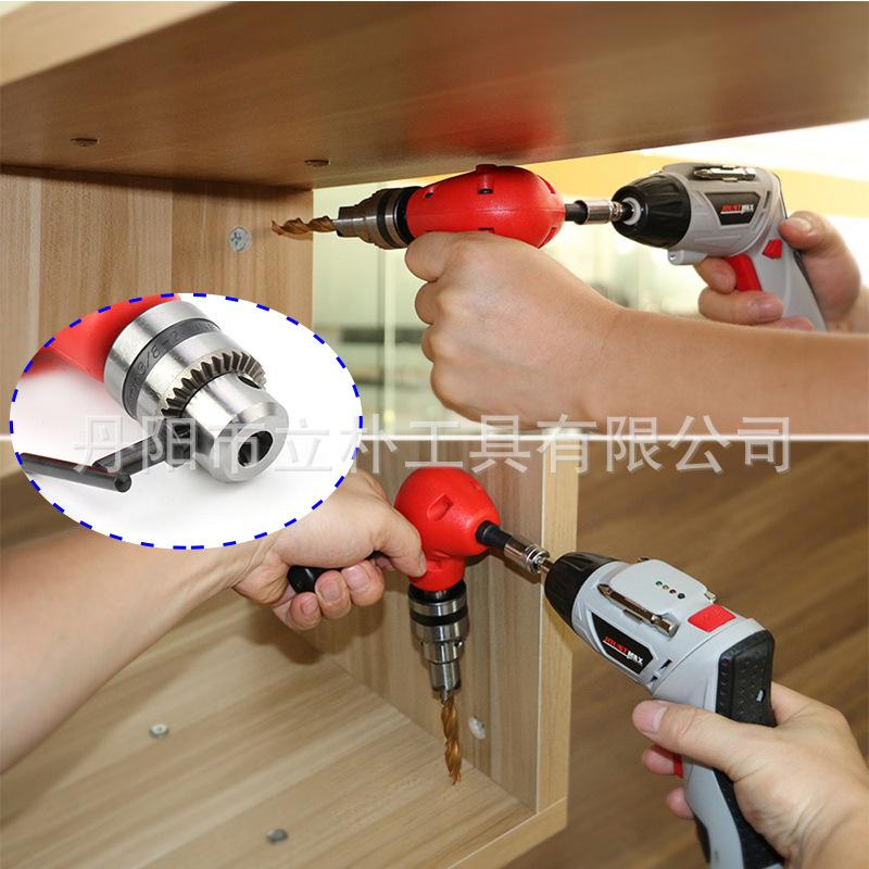 Rojo Taladro Eléctrico de 90 Grados Accesorio de Ángulo Recto Extensión Esquina Mandril de Tres Mordazas Espacio Estrecho