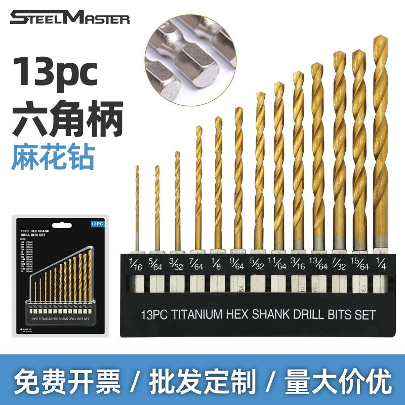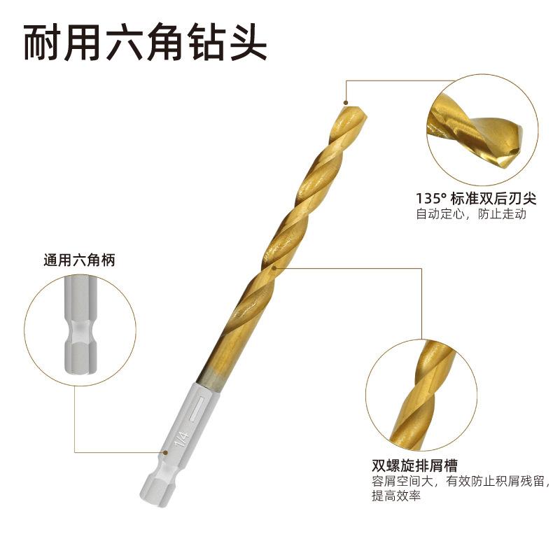 Broca helicoidal de mango recto Taladro manual eléctrico Juego de herramientas de metal plástico Acero de alta velocidad Titanio chapado Broca helicoidal para carpintería