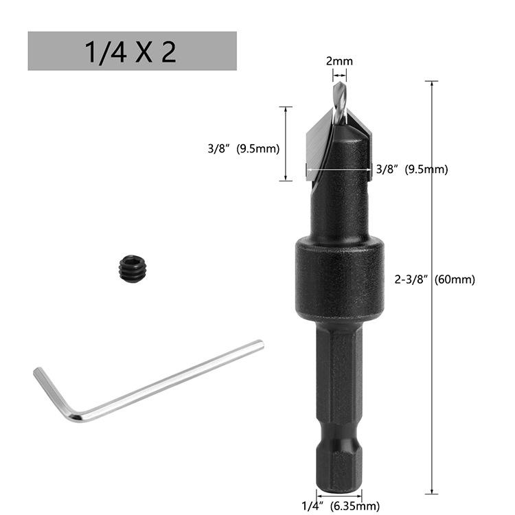 CH339DT5ABK | Juego de 5 piezasBroca Avellanadora de Vástago Hexagonal | 0.152 | Caja de plástico blanca + bolsa sellada | 79*46*46 |