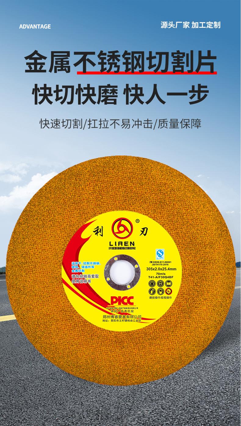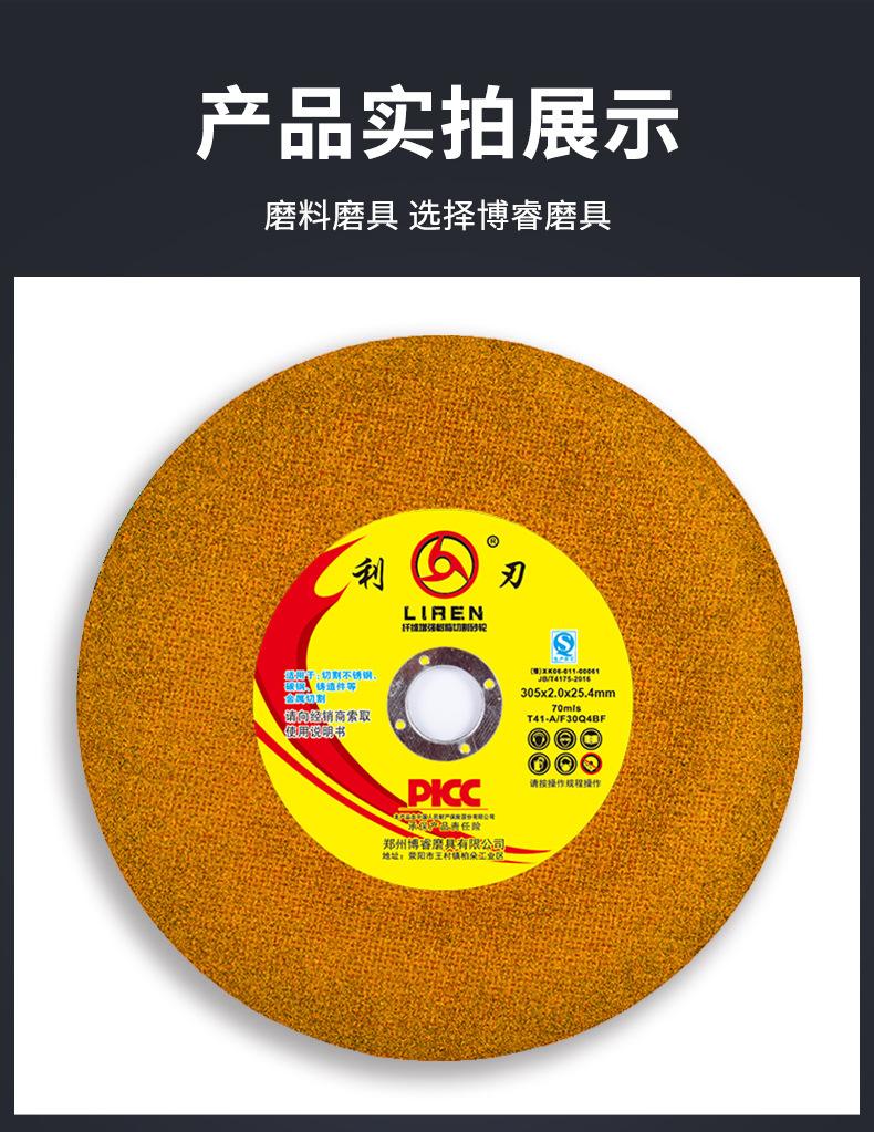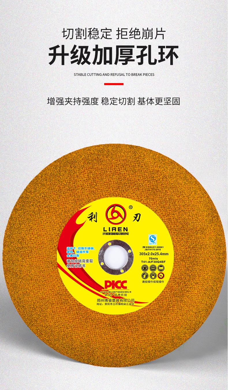 Fabricante de origen 305*2.0 Disco de corte de resina amarilla Acero inoxidable Metal Especial Fibra reforzada Resina Disco de muela