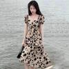 Vestido Elegante de Verano Estilo Hepburn Rosa Seco Diseño de Falda Francesa de Cintura Alta Vestido Largo Floral para la Hora del Té para Mujer