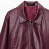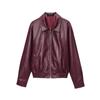 Otoño 2025 Nueva Moda Versátil Americano Retro Minimalista Cuello Vuelto Cremallera Borgoña Chaqueta de Cuero Abrigo Top de Mujer