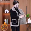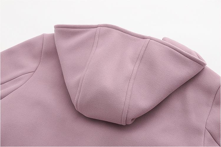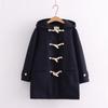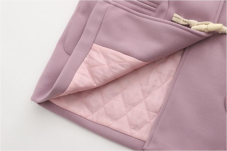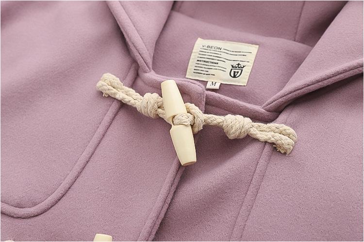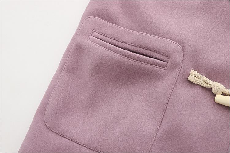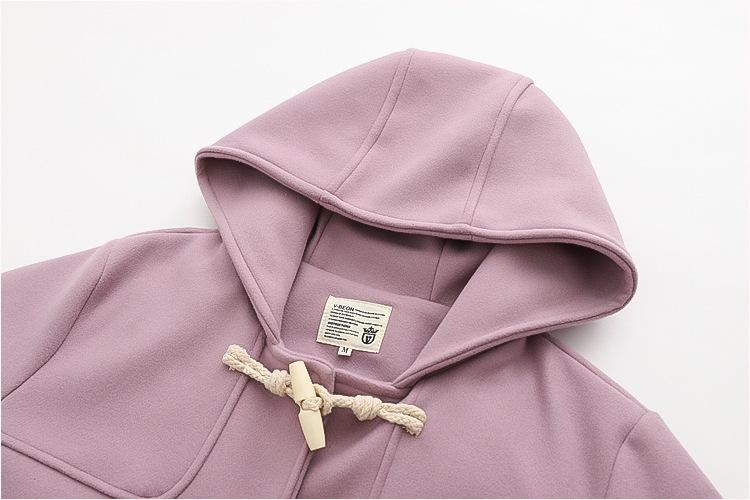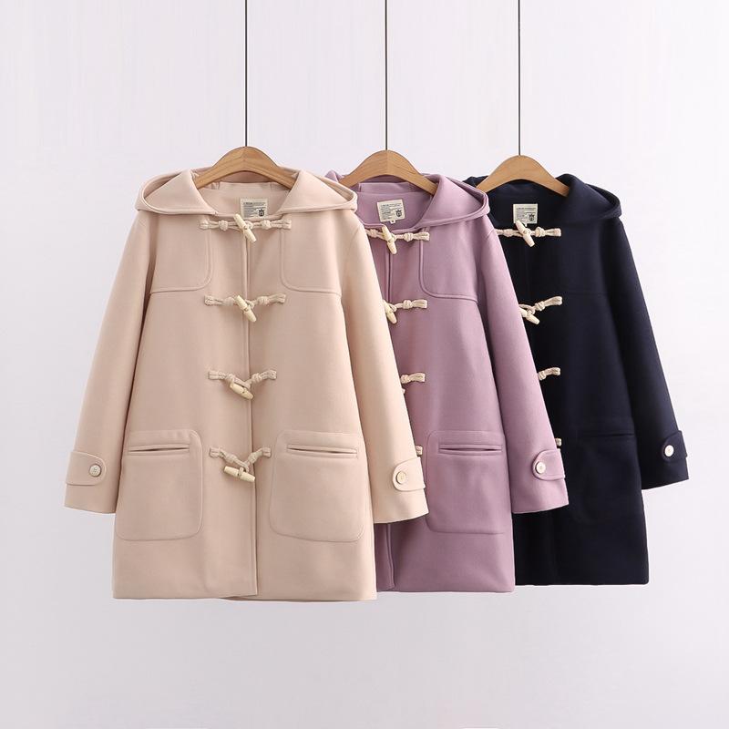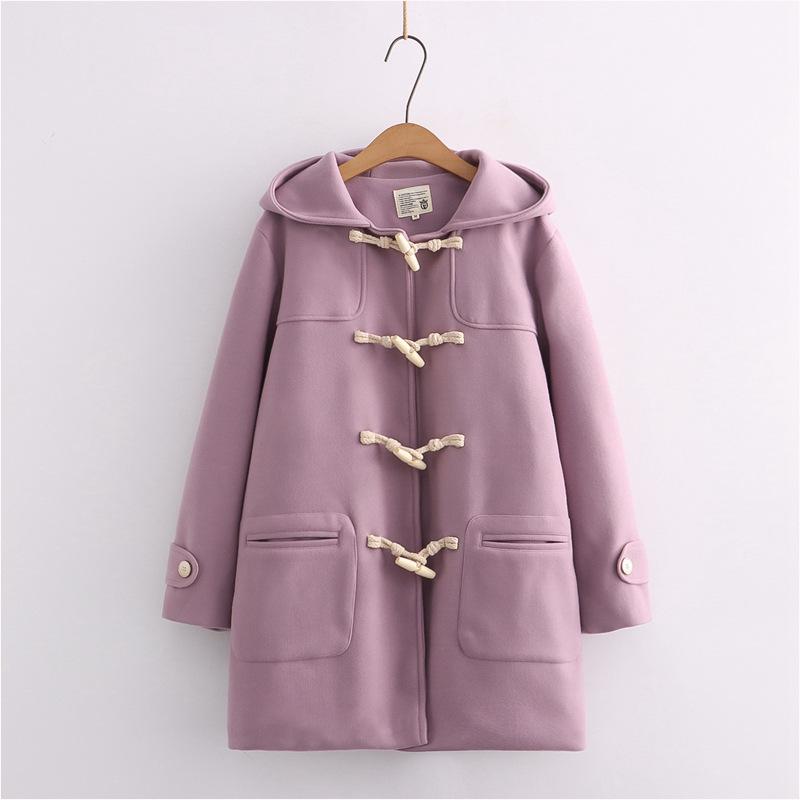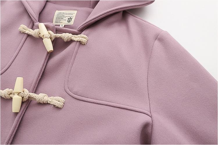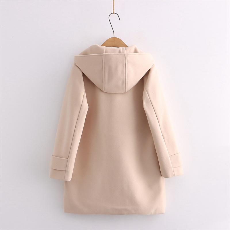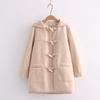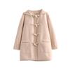 Ropa de Otoño e Invierno Estilo Coreano Grueso Color Puro Lana Exterior para Mujer con Capucha Suelto Largo Medio Botón de Cuerno Lana Exterior