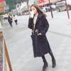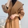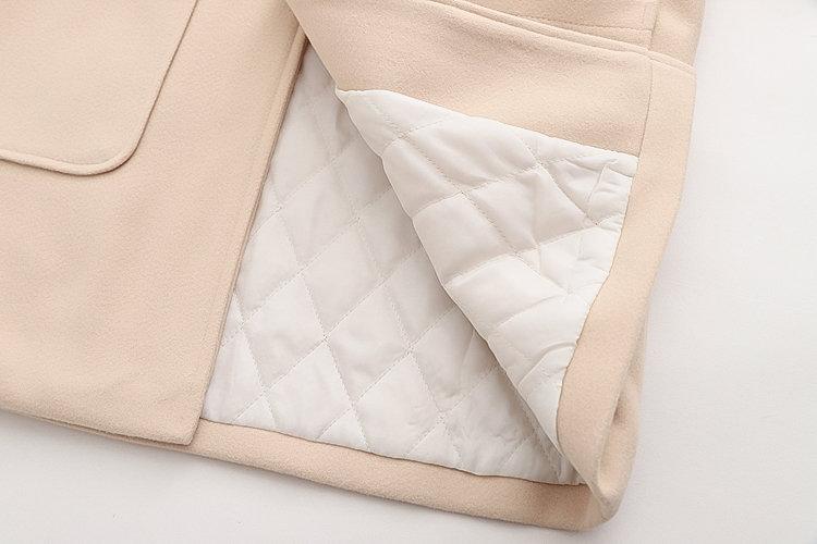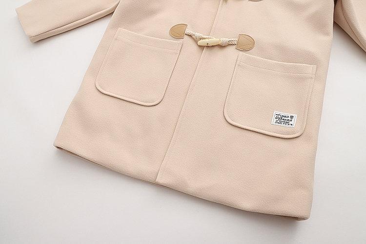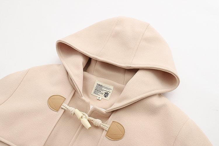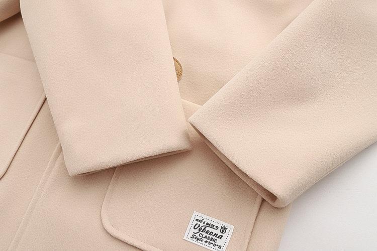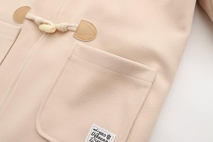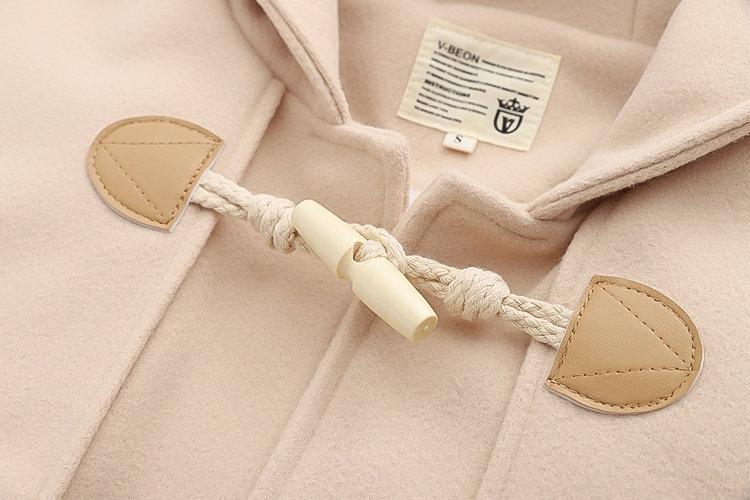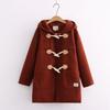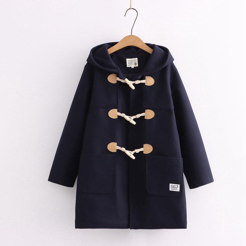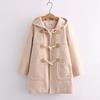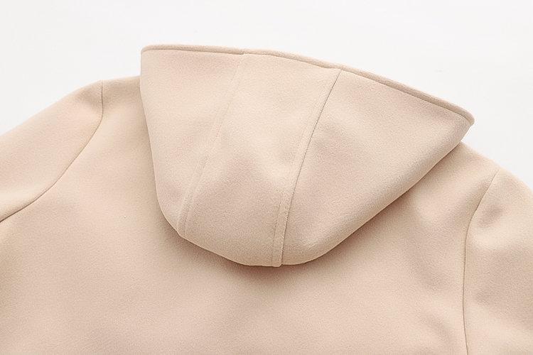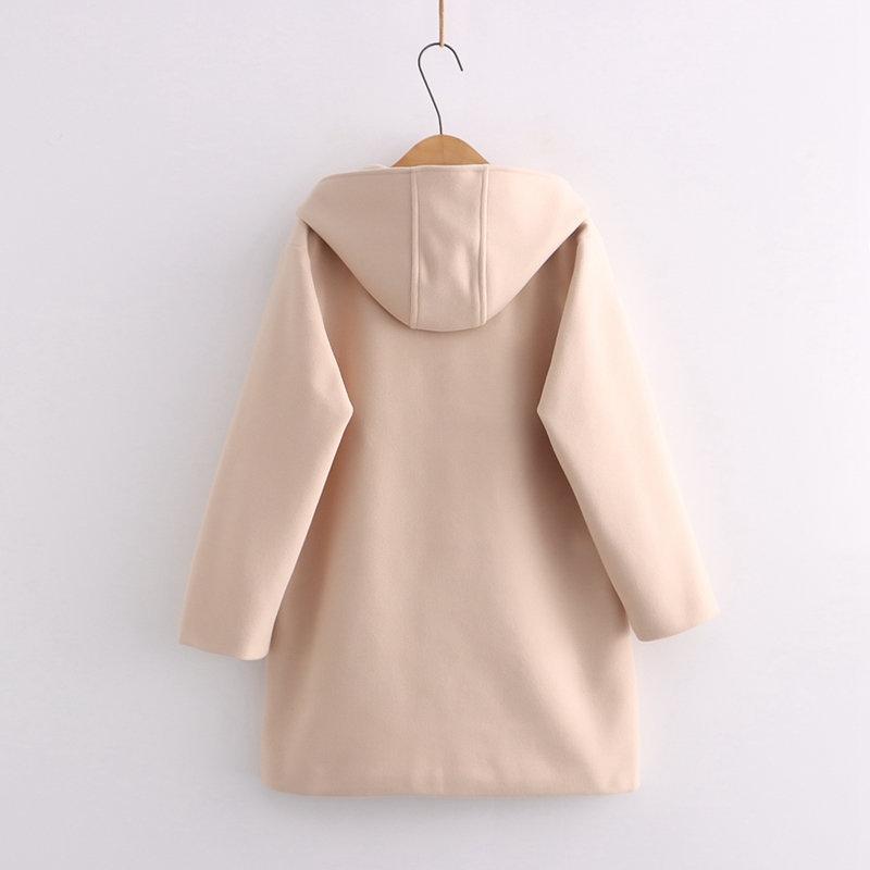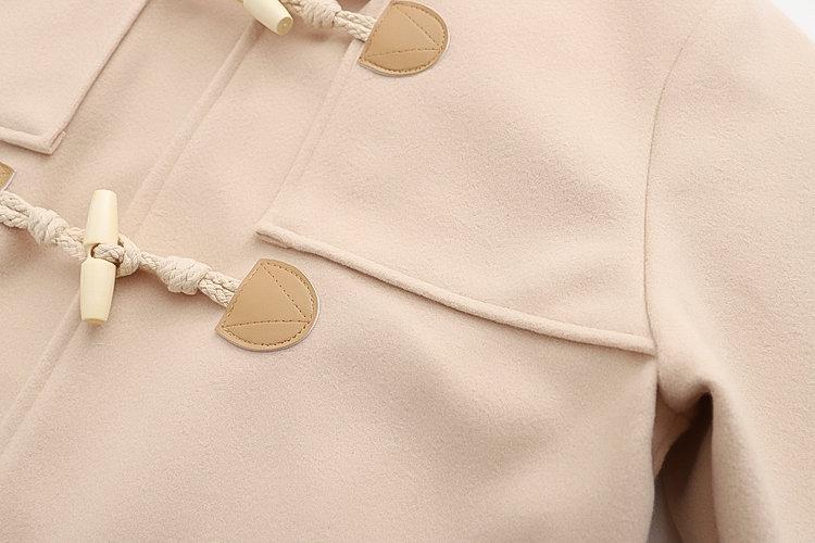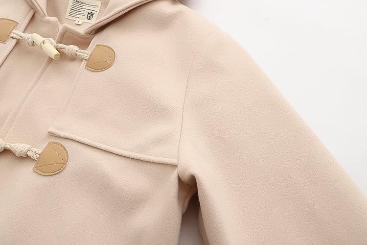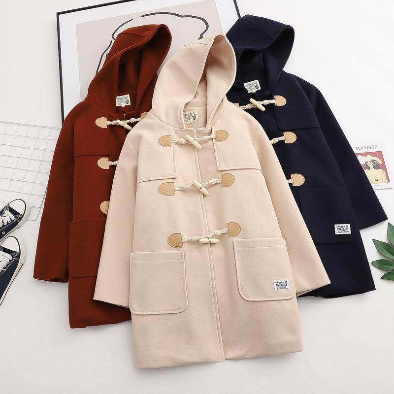 Ropa Otoño e Invierno 2025 Abrigo de Lana con Botón de Cuerno para Mujer con Bolsillo y Etiqueta Abrigo de Lana con Capucha de Largo Medio
