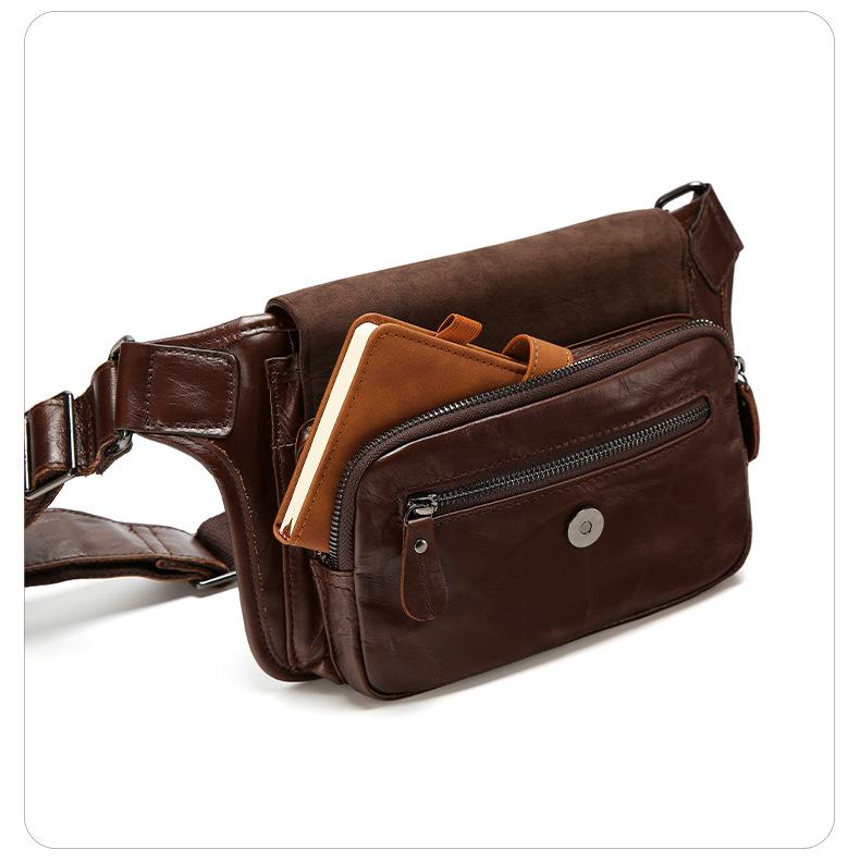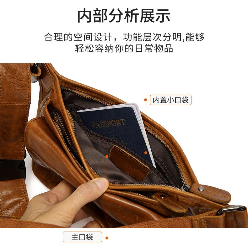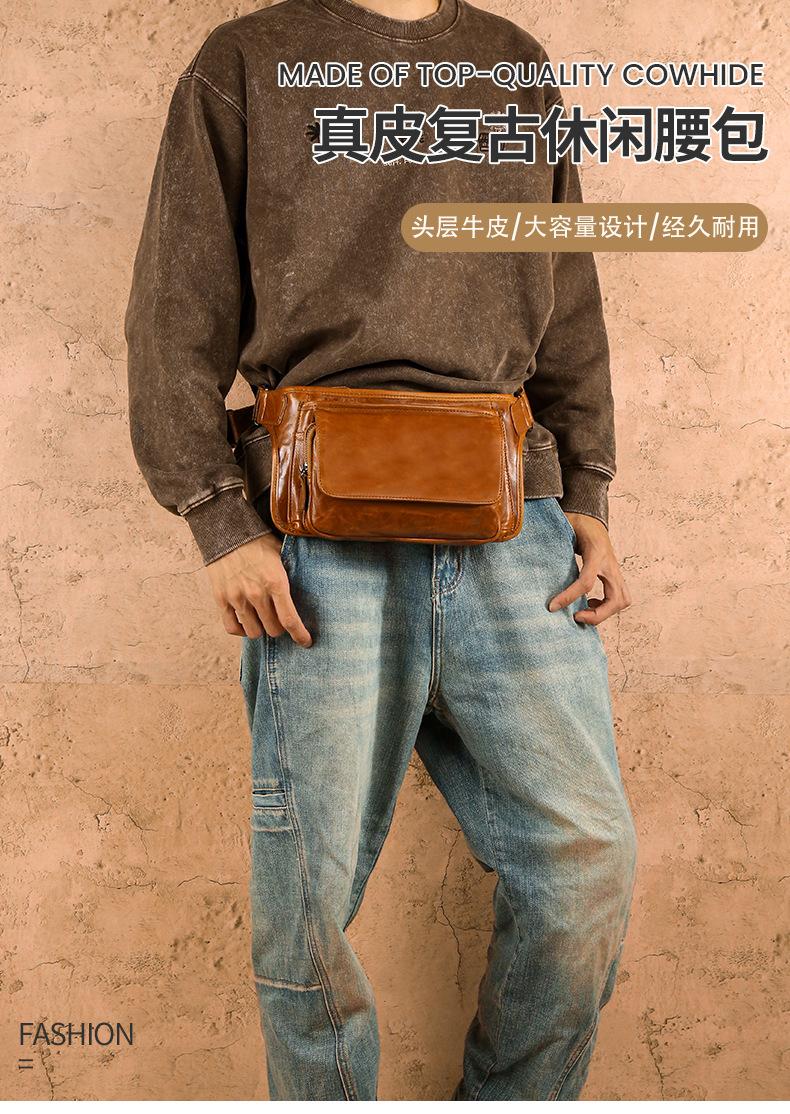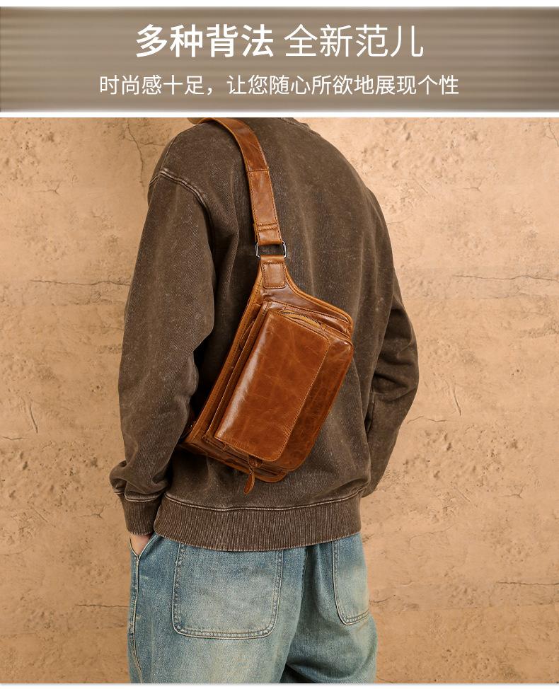 Nueva Riñonera Transfronteriza de Cuero Genuino de Alta Gama Retro para Hombre Bolso de Pecho Casual para el Trabajo Bolso de Hombro Bolso Bandolera