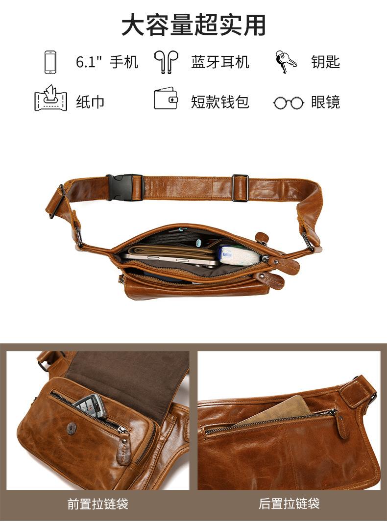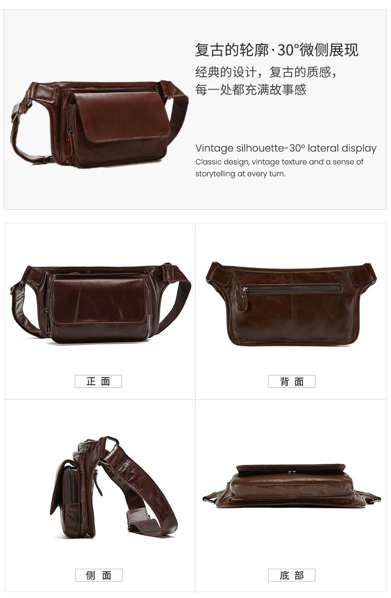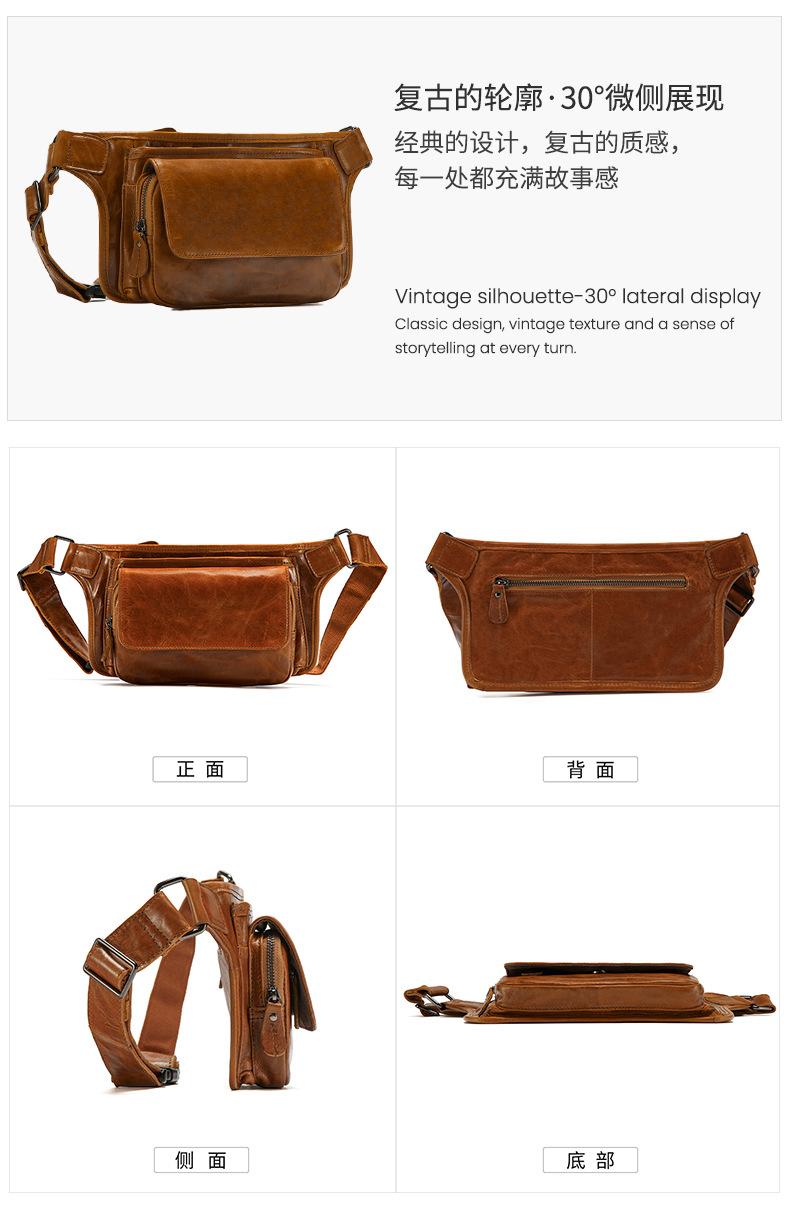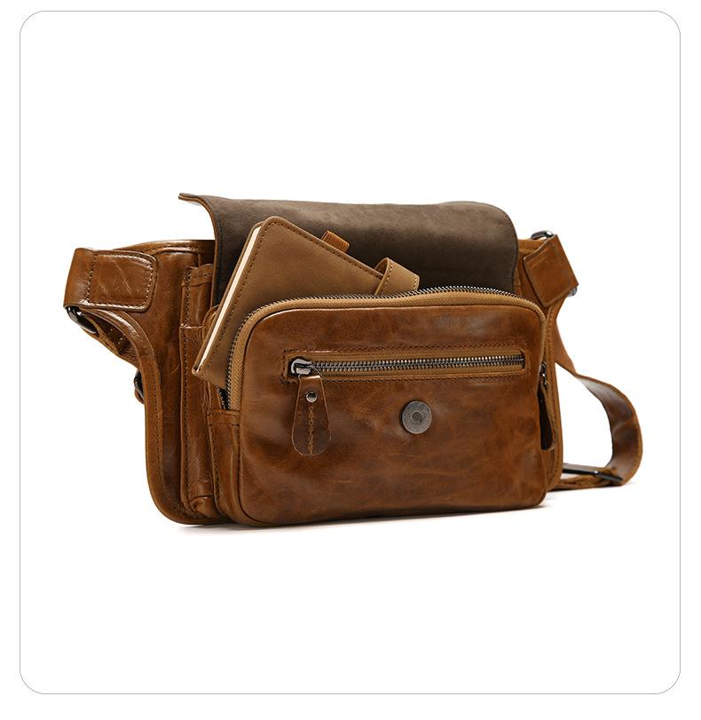 Nueva Riñonera Transfronteriza de Cuero Genuino de Alta Gama Retro para Hombre Bolso de Pecho Casual para el Trabajo Bolso de Hombro Bolso Bandolera