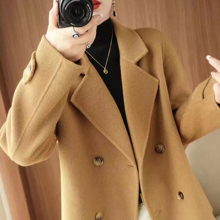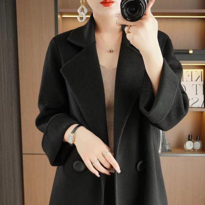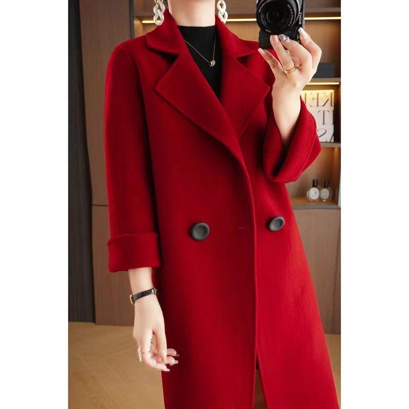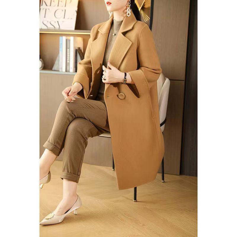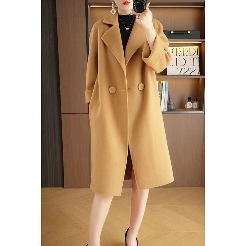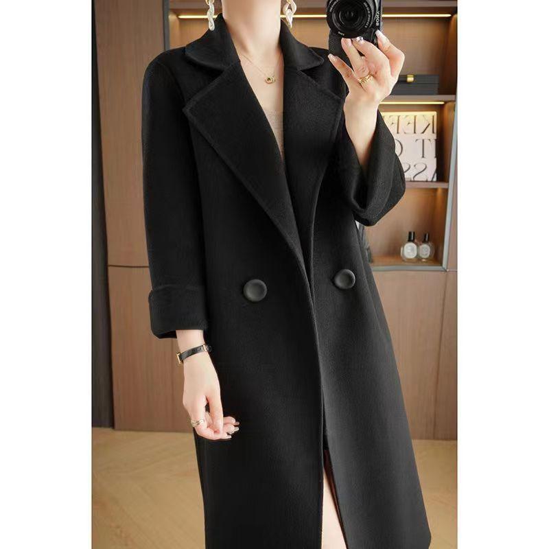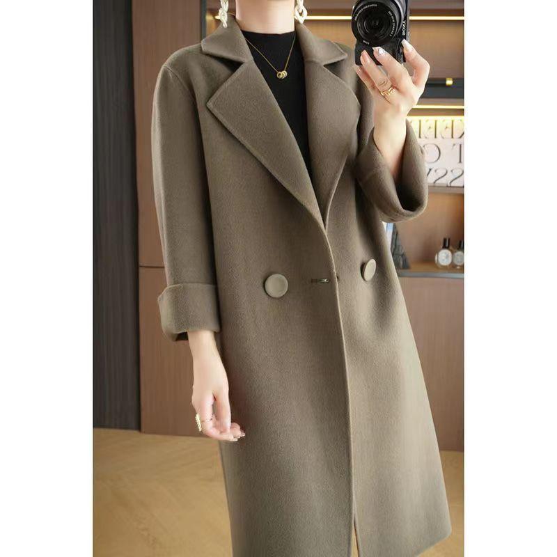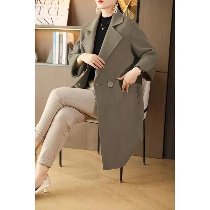 Nuevo abrigo de cachemira de doble cara talla grande holgado largo medio de lana corte slim adelgazante para mujer de alta calidad