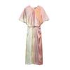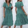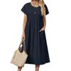 Vestido para mujer europeo y americano de comercio exterior transfronterizo 2025, nuevo vestido de algodón y lino de manga corta con cuello redondo y bolsillo plisado de color sólido