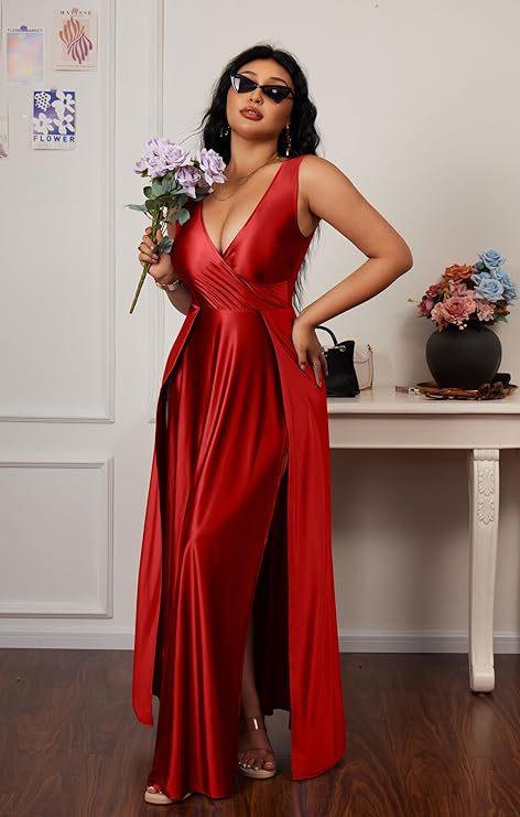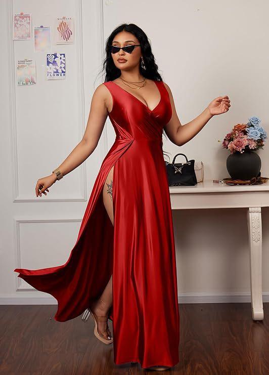 Vestido de Noche Europeo y Americano Transfronterizo Talla Grande 2025 Nuevo Vestido Sexy de Cuello en V para Mujer Talla Grande Estilo Comercio Exterior Amazon