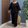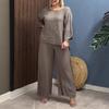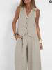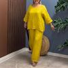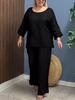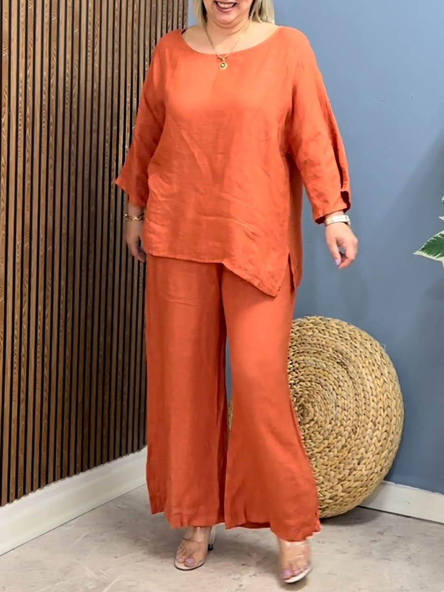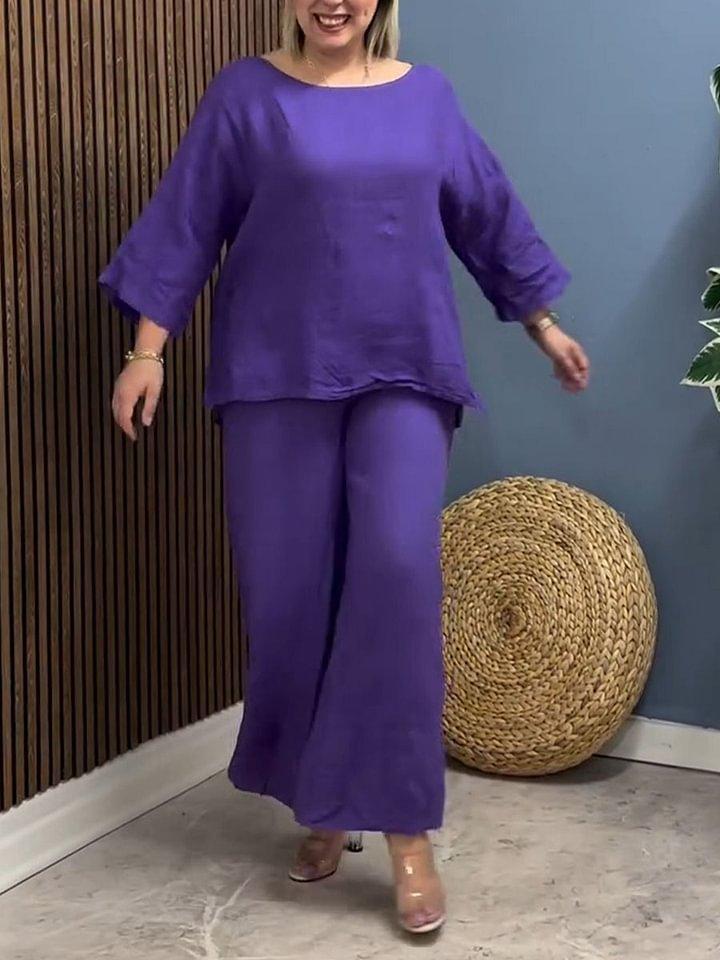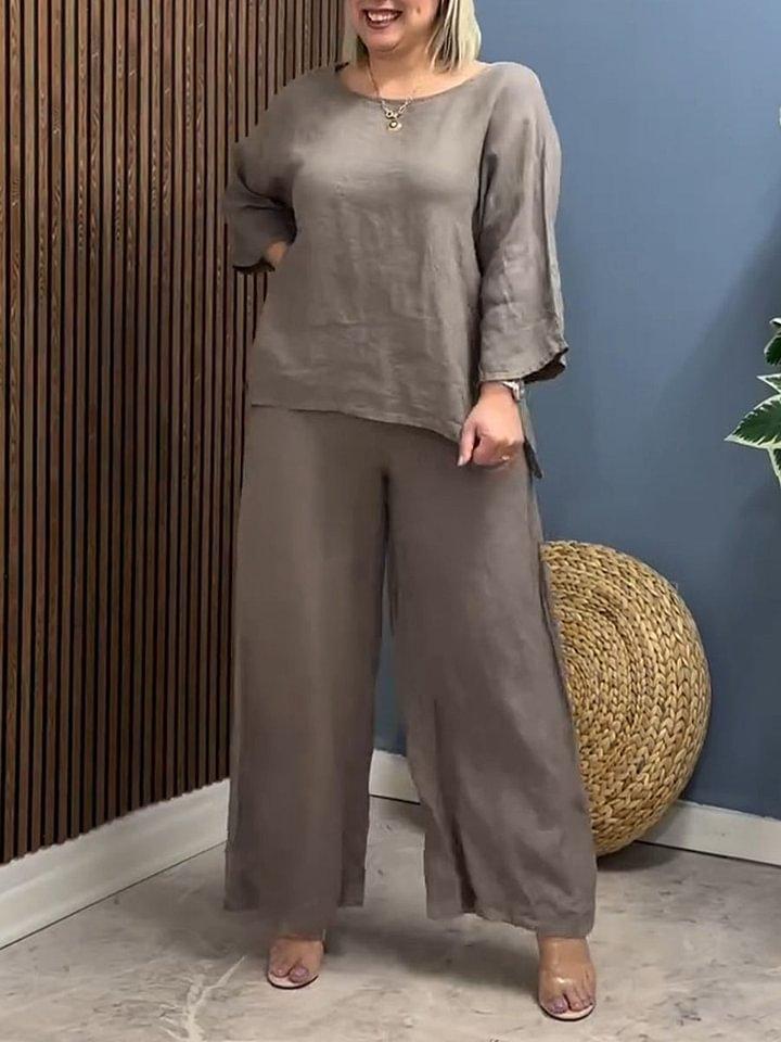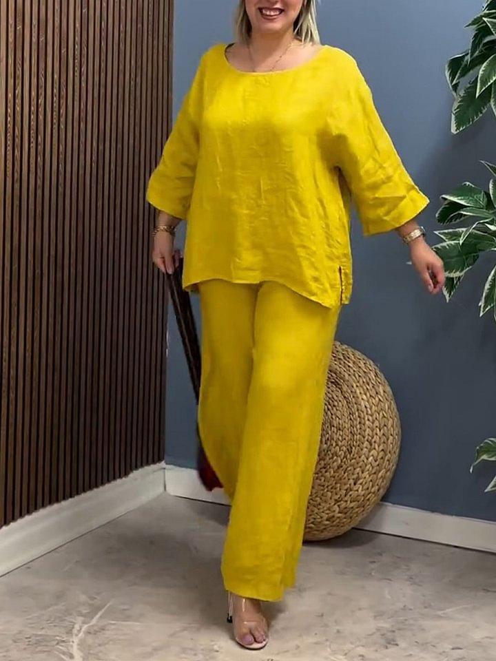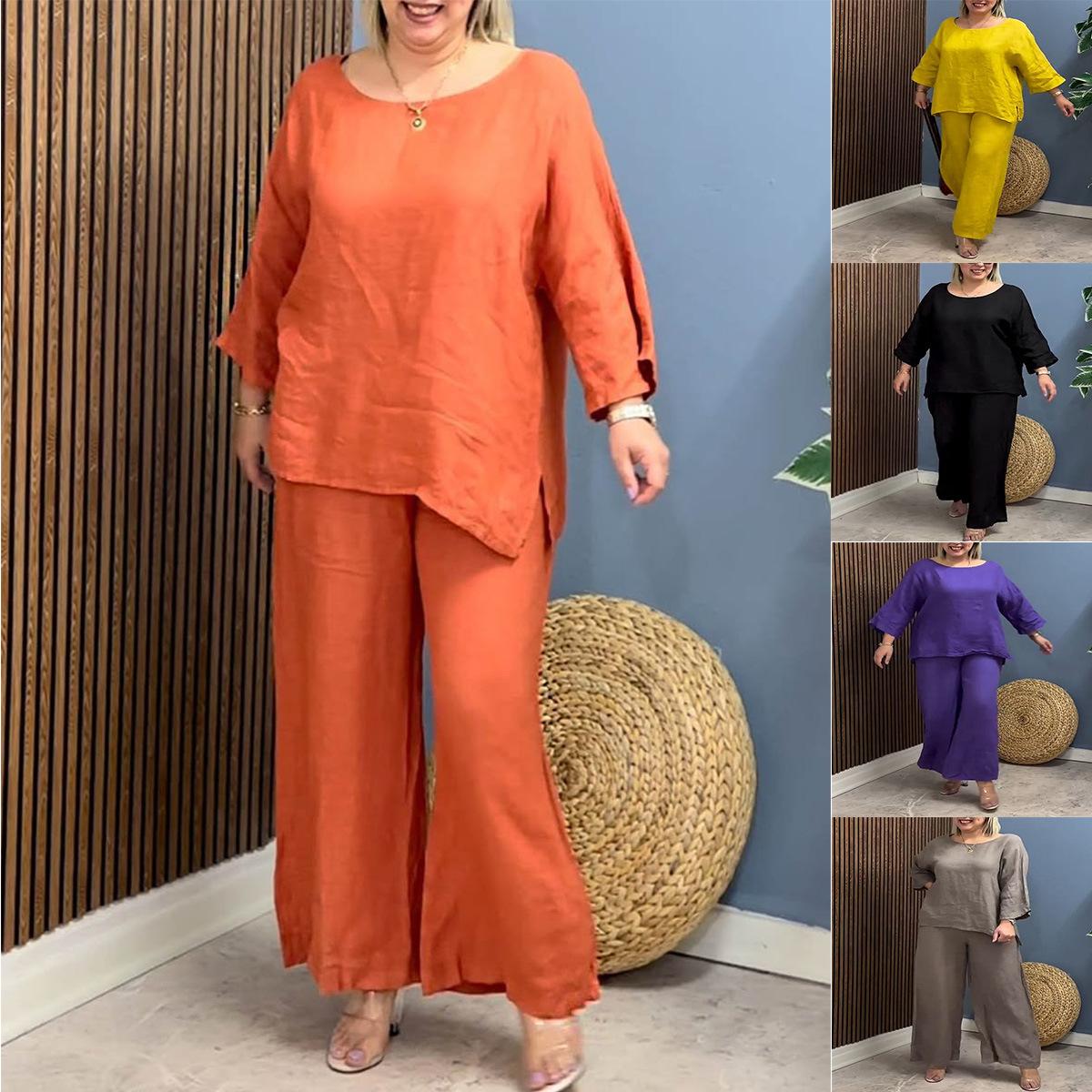 Traje Nuevo Europeo y Americano Transfronterizo 2025 de Algodón y Lino para Mujer, Moda, Color Puro, Elegante, Suelto, Casual, Conjunto de Dos Piezas