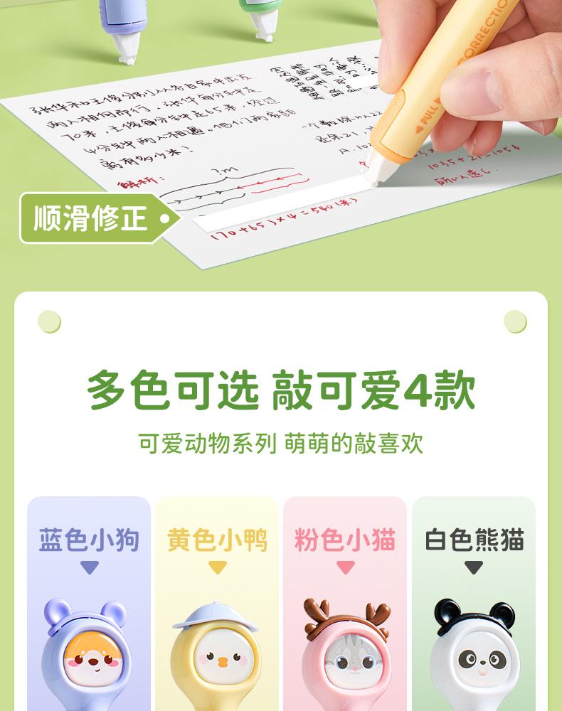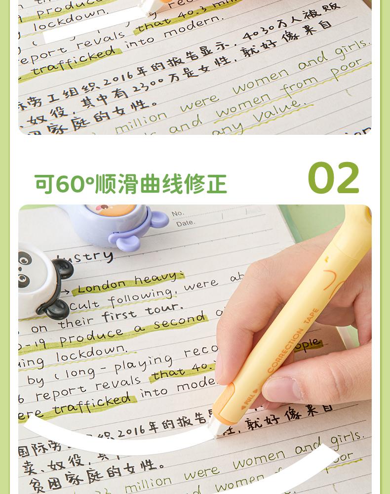 Cinta correctora tipo bolígrafo Clase 3-2 con repuestos reemplazables para estudiantes de primaria, Stickers correctores, Cinta correctora, Silenciosa, Gran capacidad