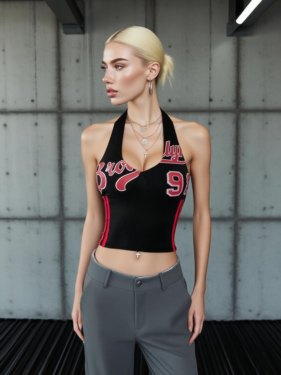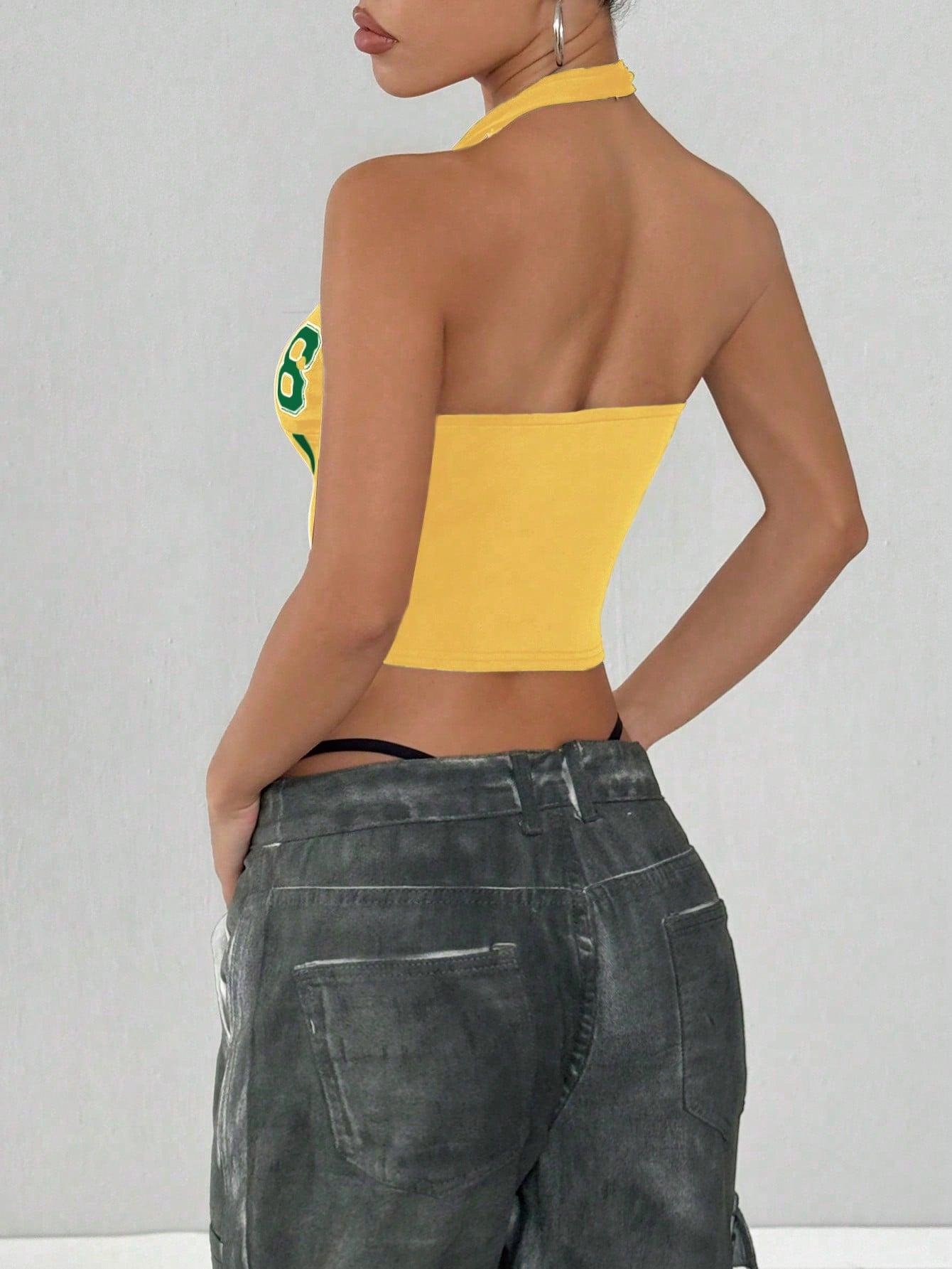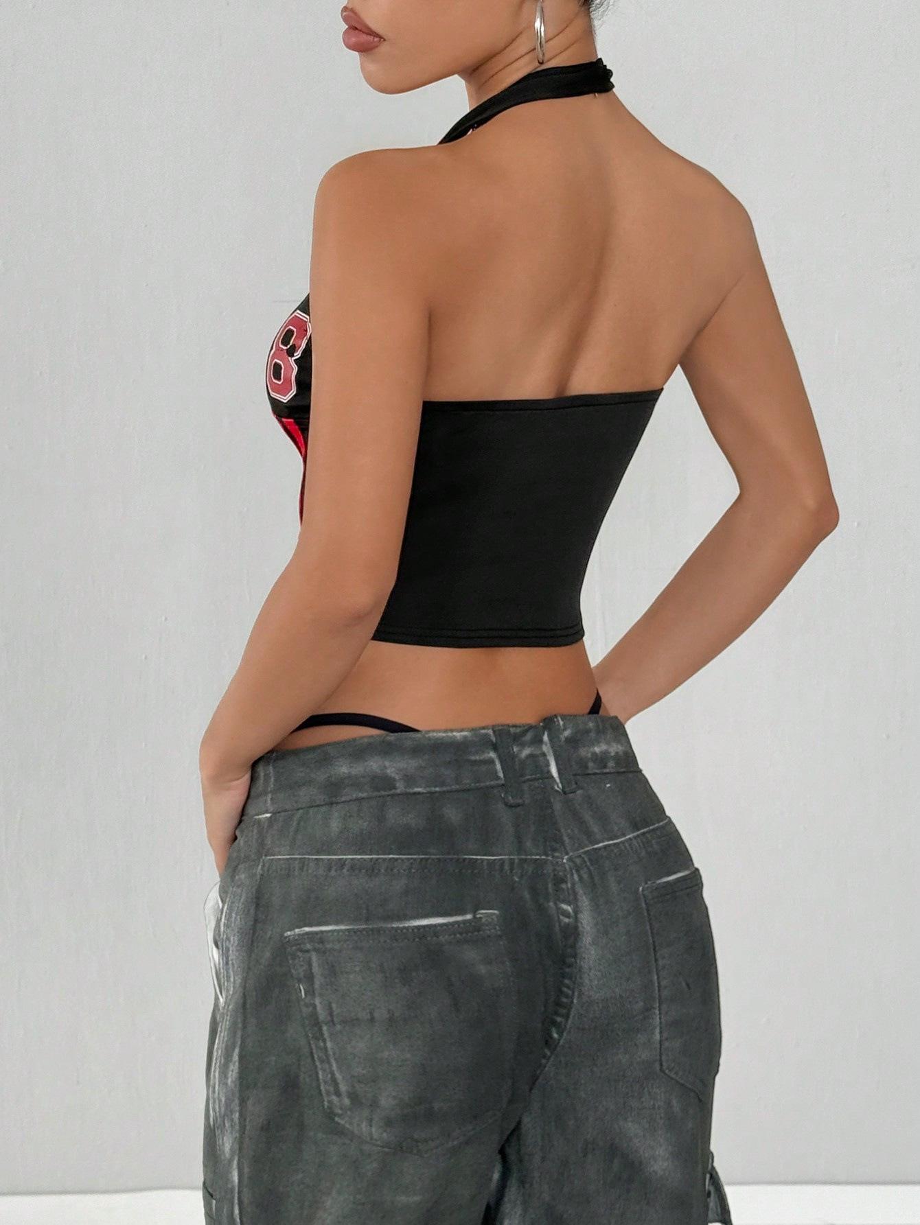 Nueva ropa de mujer con personalidad estilo europeo y americano, sexy top halter de cuello en V, corte slim ceñido, adelgazante, sin espalda, prenda exterior, transfronterizo