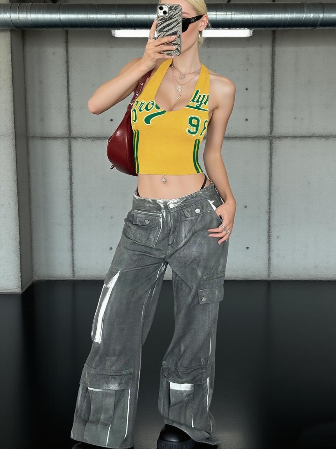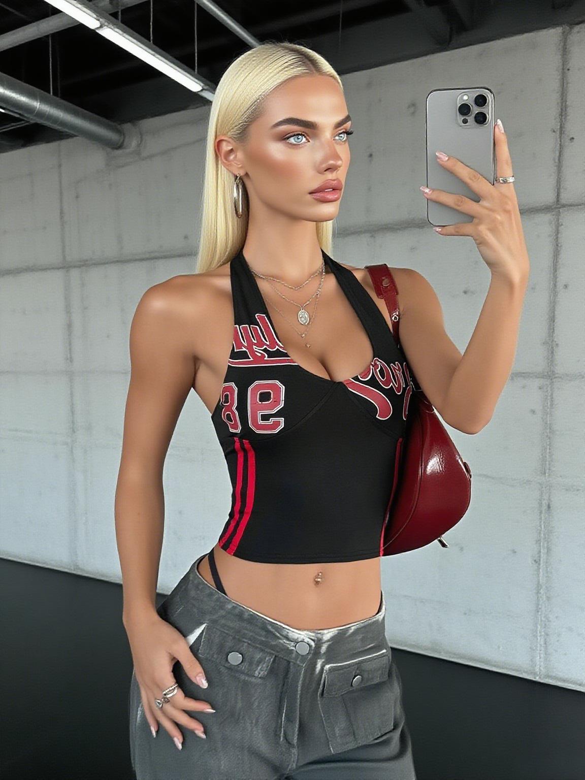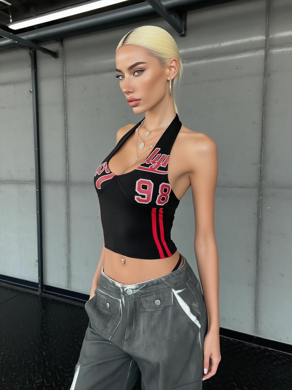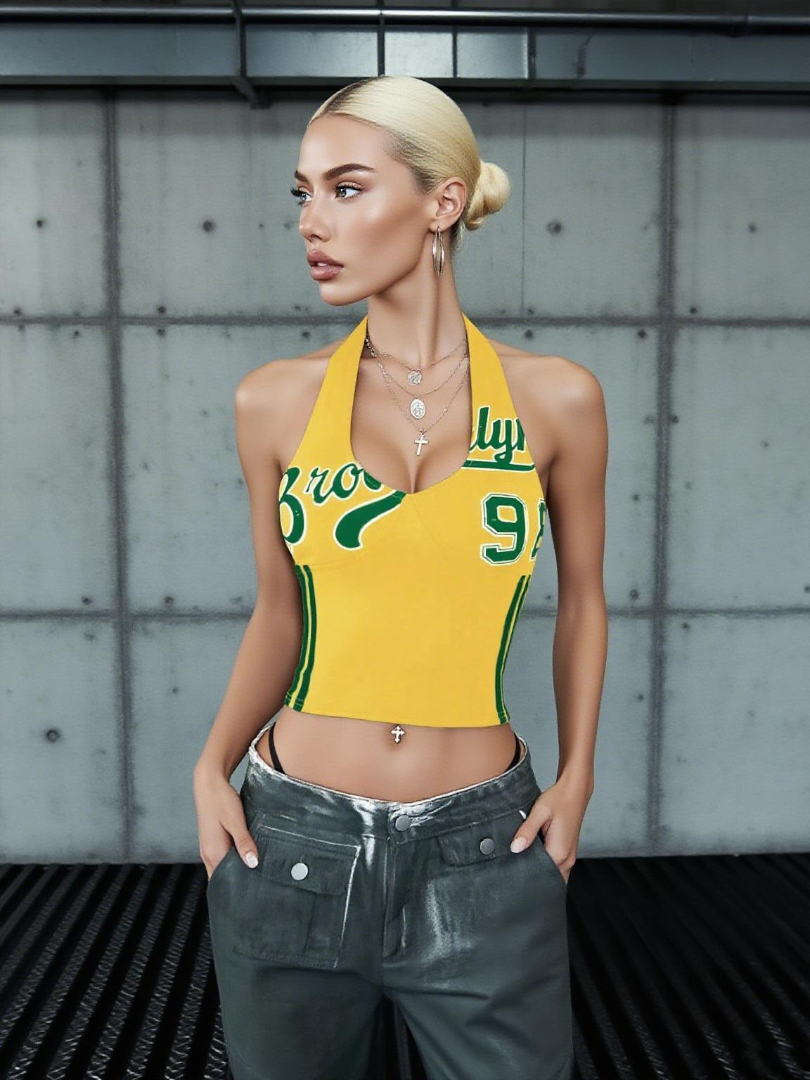 Nueva ropa de mujer con personalidad estilo europeo y americano, sexy top halter de cuello en V, corte slim ceñido, adelgazante, sin espalda, prenda exterior, transfronterizo