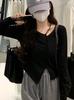 Camiseta de manga larga con escote asimétrico y hombros descubiertos para chica sexy y pura, diseño con sentido de la moda para principios de otoño, camiseta básica versátil, ropa interior, top para otoño e invierno
