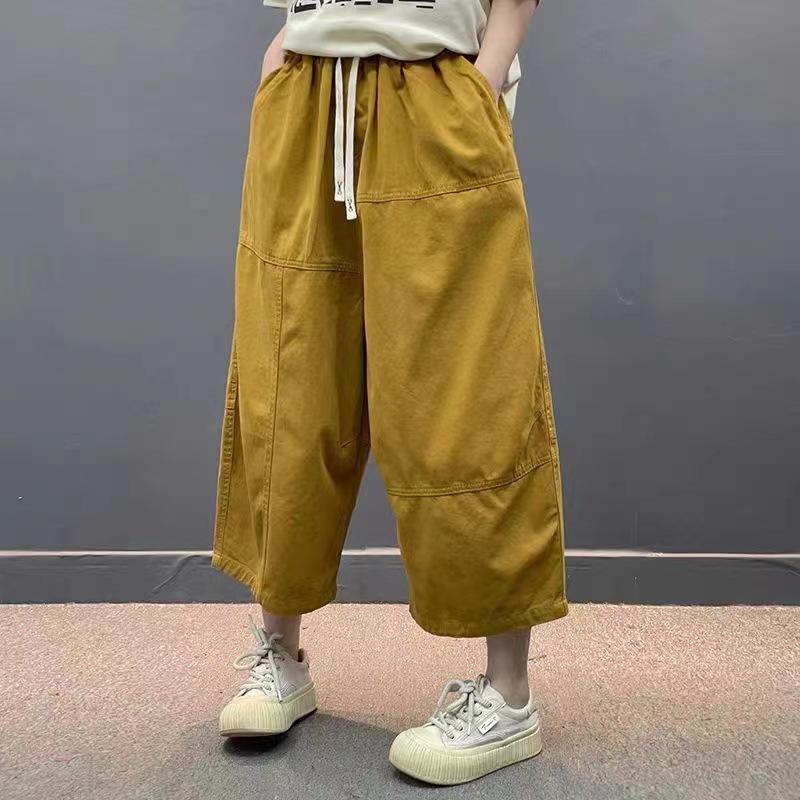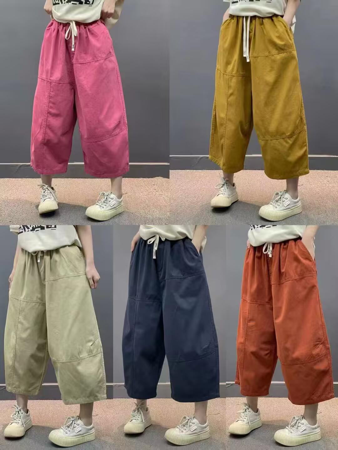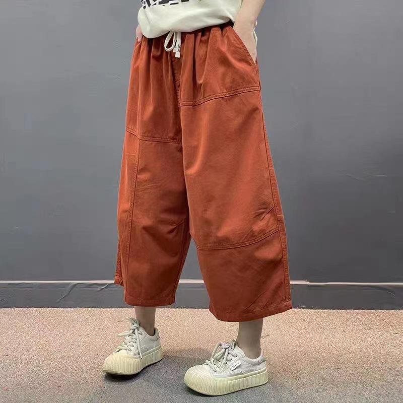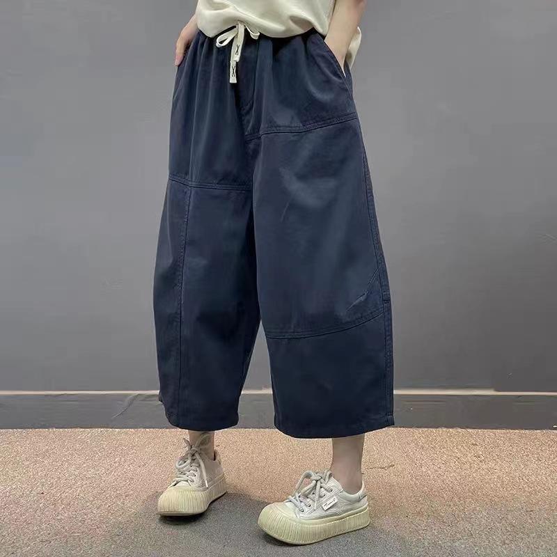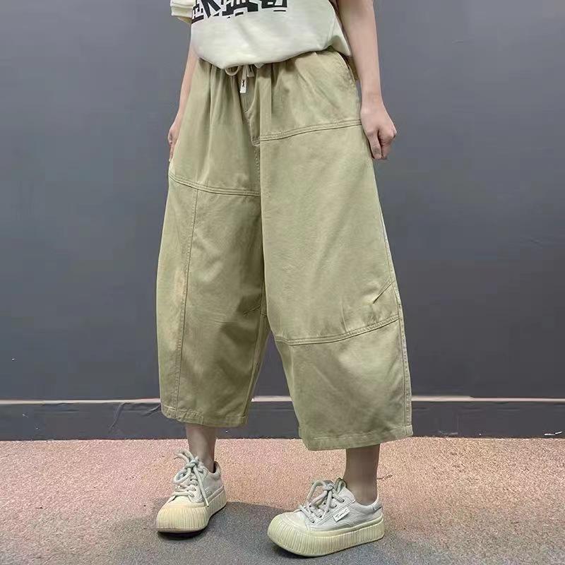 Verano 2025 Nuevos Pantalones Casuales para Mujer Pantalones Capri Pantalones Rectos Versión Grande Cintura Elástica con Cordón Pantalones Cargo