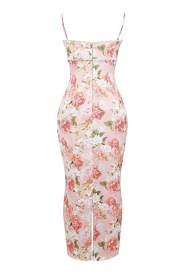 Ivory Floral Print dress, pink Peony Flower Printed dress