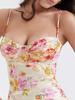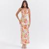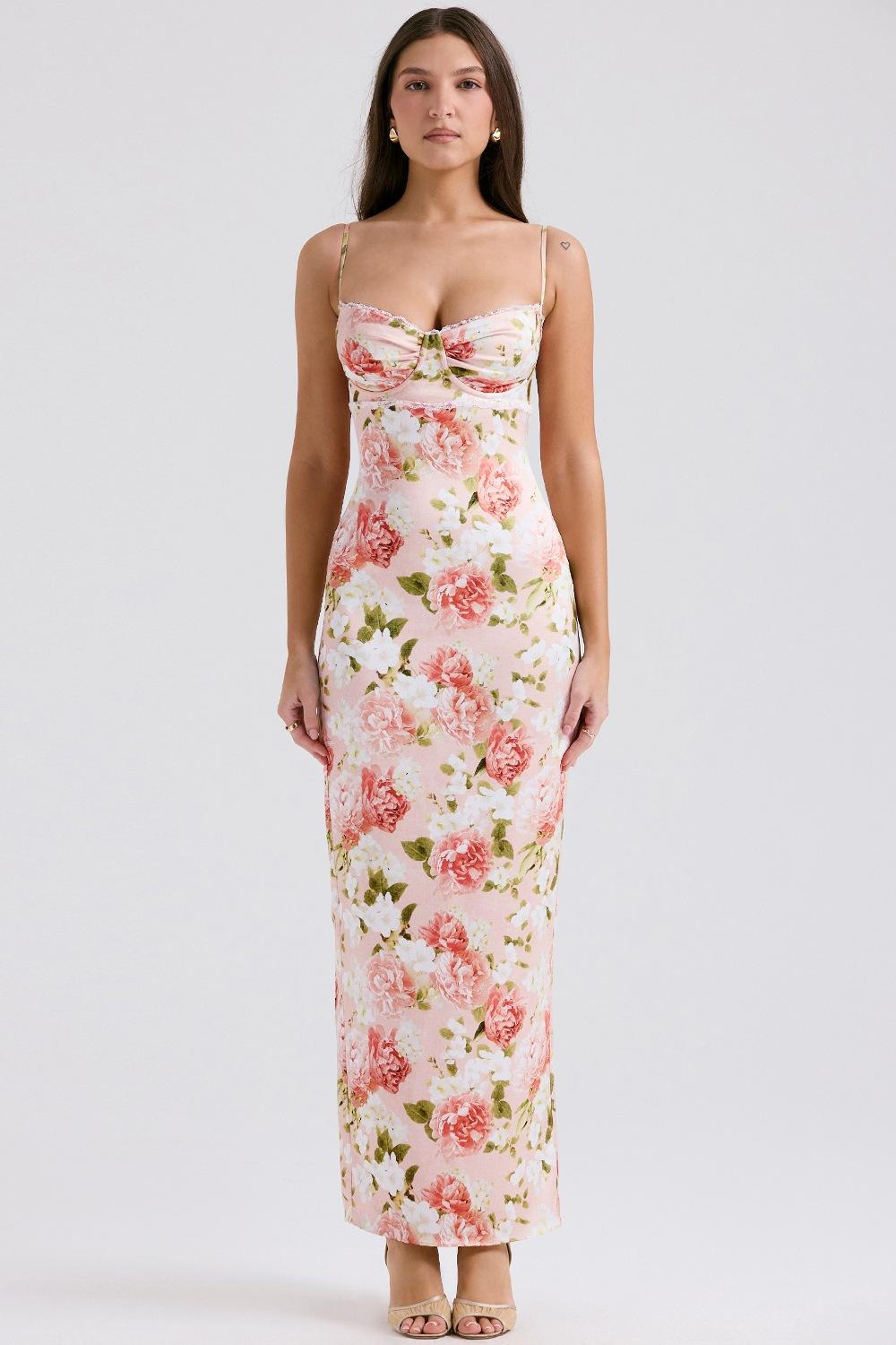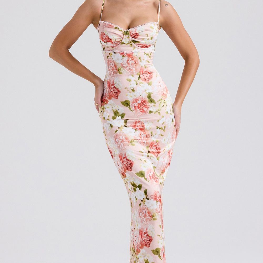 Estilo Ins de Verano Europeo y Americano Estilo Chica Hot Material Seda de Leche Ribete de Encaje Fruncido en el Pecho Vestido Largo Ajustado Sexy