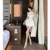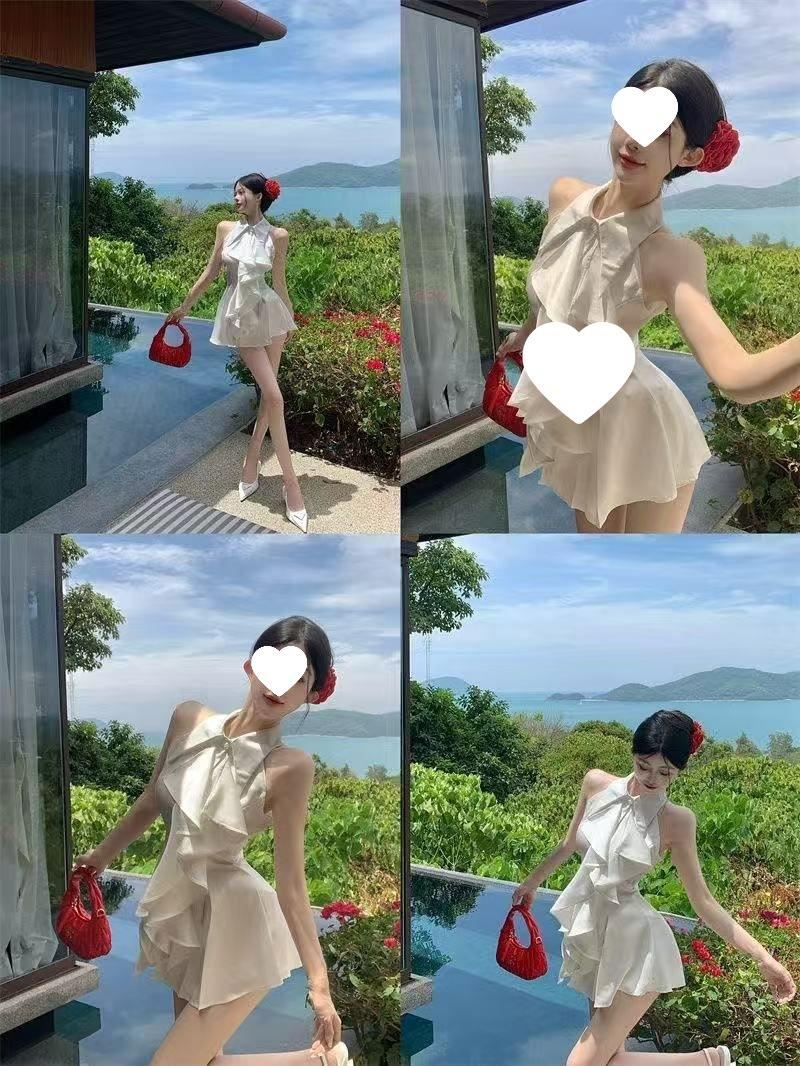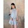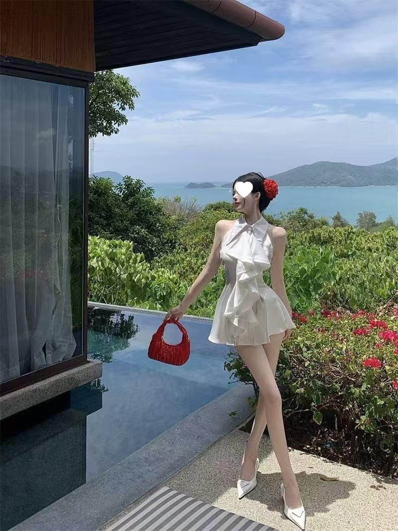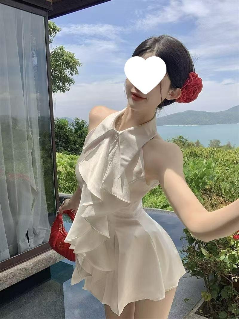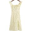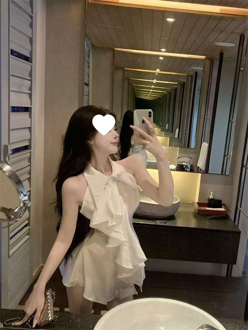 Blusa Top de Estilo Suave Dulce con Volantes Sin Mangas para Mujer Verano Temperamento Francés Largo Medio Ajustado a la Cintura Adelgazante Vestido Camisero