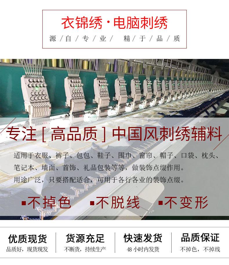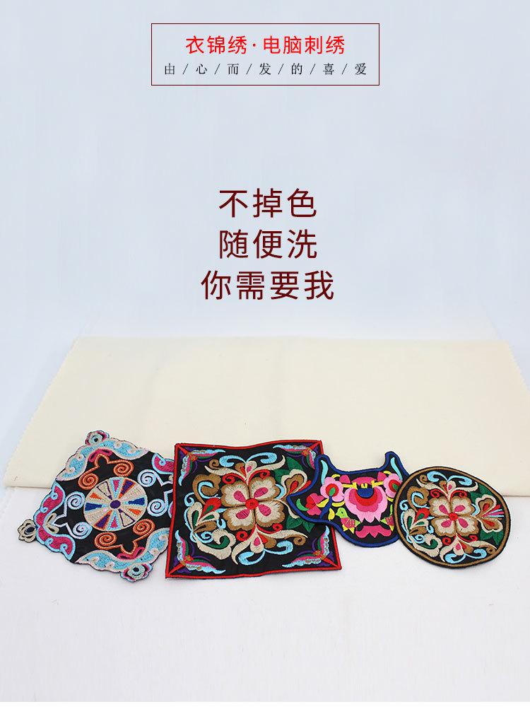 Yijinxiu accesorios de ropa bordados se enfoca en producir parches bordados de estilo chino de alta calidad, parches bordados, parches para reparar ropa, aplicaciones, parches bordados de estilo étnico, parches decorativos, parches para reparar agujeros, aplicaciones bordadas, accesorios para mangas y bolsillos, decoraciones para bolsos, decoraciones para sombreros, decoraciones para cojines, decoraciones para Hanfu, aplicaciones de estilo retro. Adecuado para ropa, pantalones, bolsos, zapatos, bufandas, cortinas, sombreros, bolsillos, almohadas, cuadernos, paredes, joyería, embalaje de regalo, etc., para embellecimiento decorativo. Ampliamente utilizado, siempre y cuando la combinación sea adecuada, se puede usar para decoración y embellecimiento en diversas industrias.