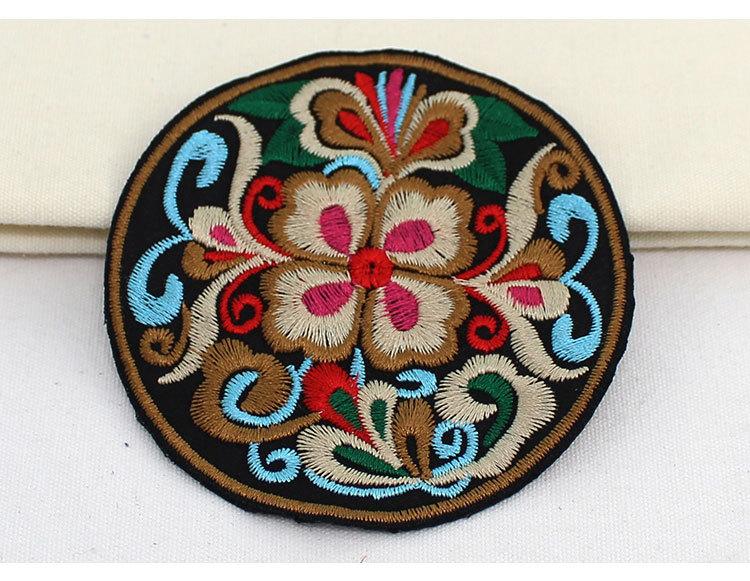 Parche Pequeño Bordado con Patrón de Estilo Étnico Decoración para Sombrero Bolsa Redondo Cuadrado Parche de Tela Bordada Aplicación para Ropa de Manga
