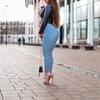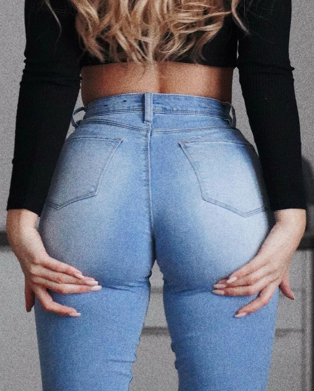 Pantalones de Mezclilla de Cadera Melocotón de Cintura Alta Estilo Ins para Mujer Pantalones Lápiz Europeos y Americanos Pantalones de Mujer Denim Elástico Pantalones de Cadera