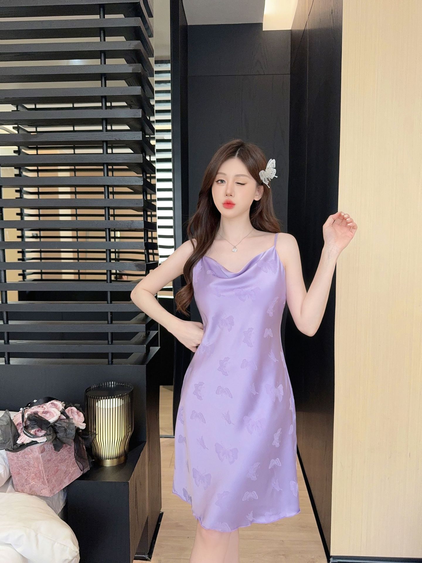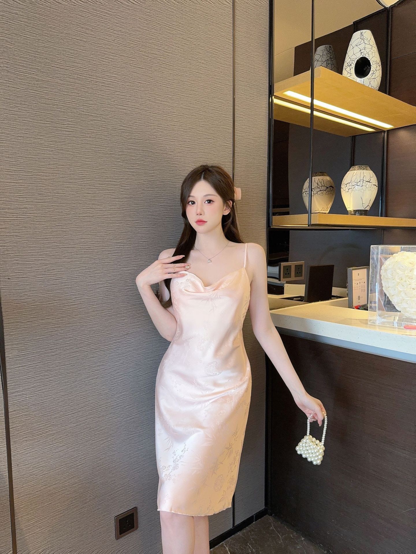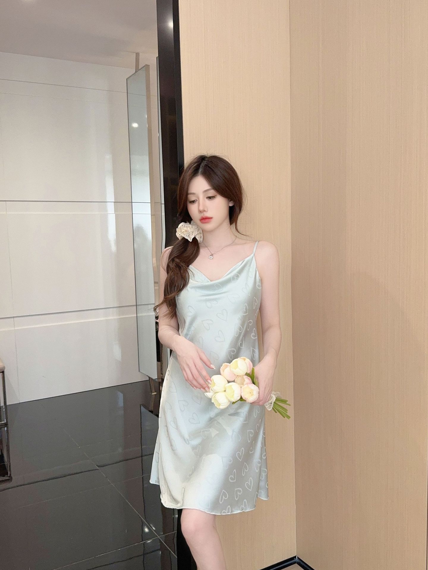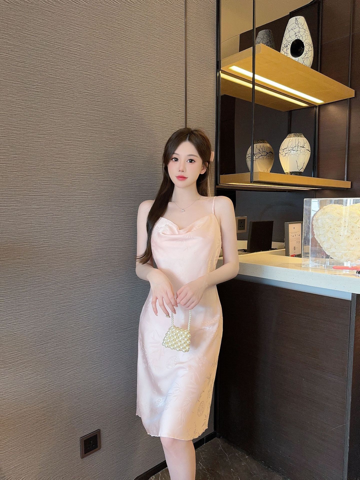 Pijama Sexy, Camisón Femenino de Verano con Tirantes, Pijama Jacquard de Seda Hielo y Nieve, Falda de Seda de Alta Gama, Sensación Fresca