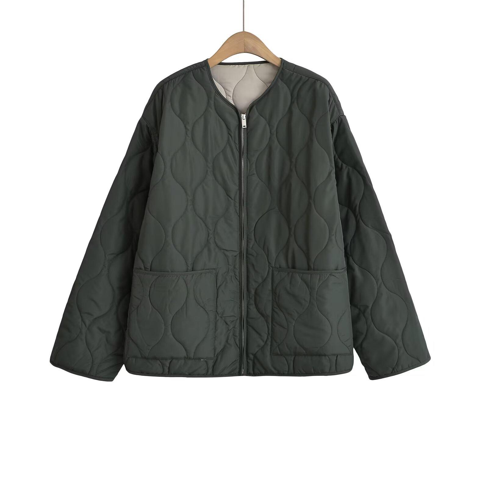 Chaqueta acolchada de algodón suelto para mujer transfronteriza, otoño e invierno, nueva moda, cremallera, abrigo de algodón fino, moderno, protección contra el frío