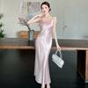 Verano 2025 Nuevo Ropa de Mujer Transfronteriza Europea y Americana Vestido Corto Plisado con Tirantes Decorado con Lazo W09 6592