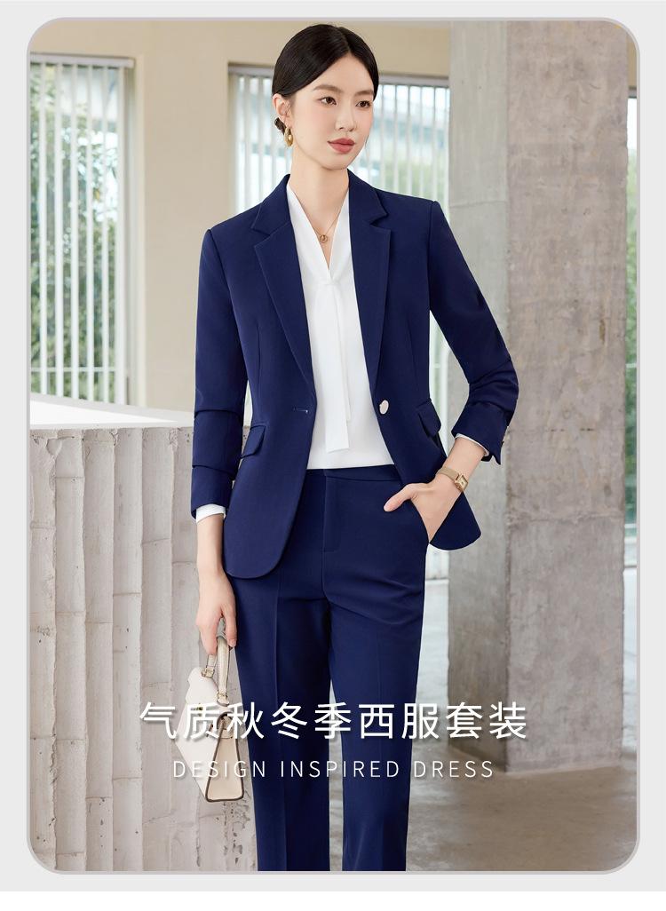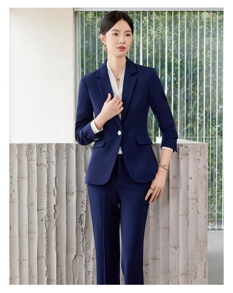 Conjunto de Traje Azul Nuevo de Primavera y Otoño 2025 Ropa Profesional para Mujer Temperamento para Ir al Trabajo Traje OL Chaqueta