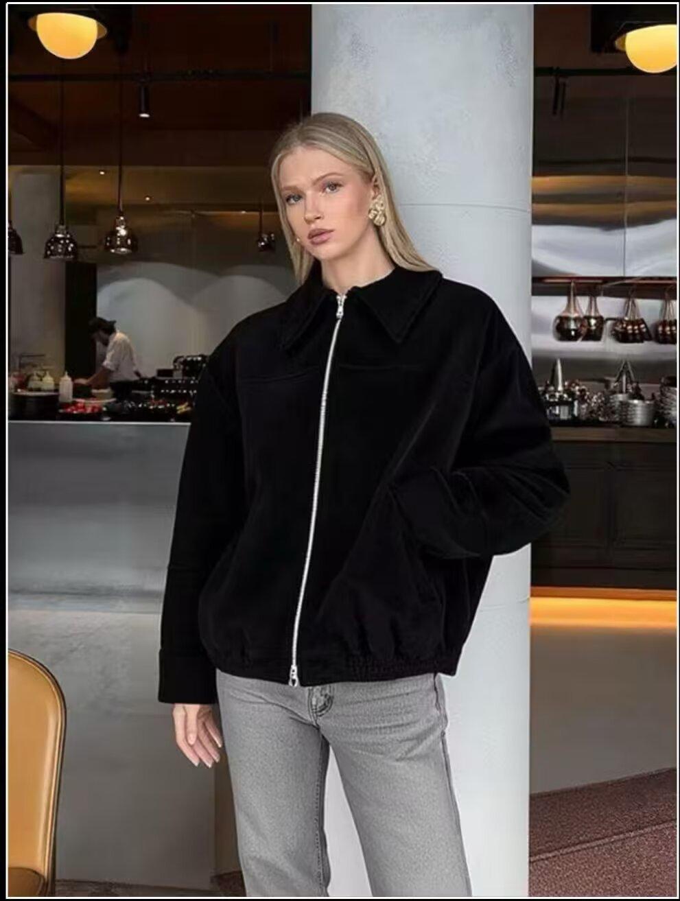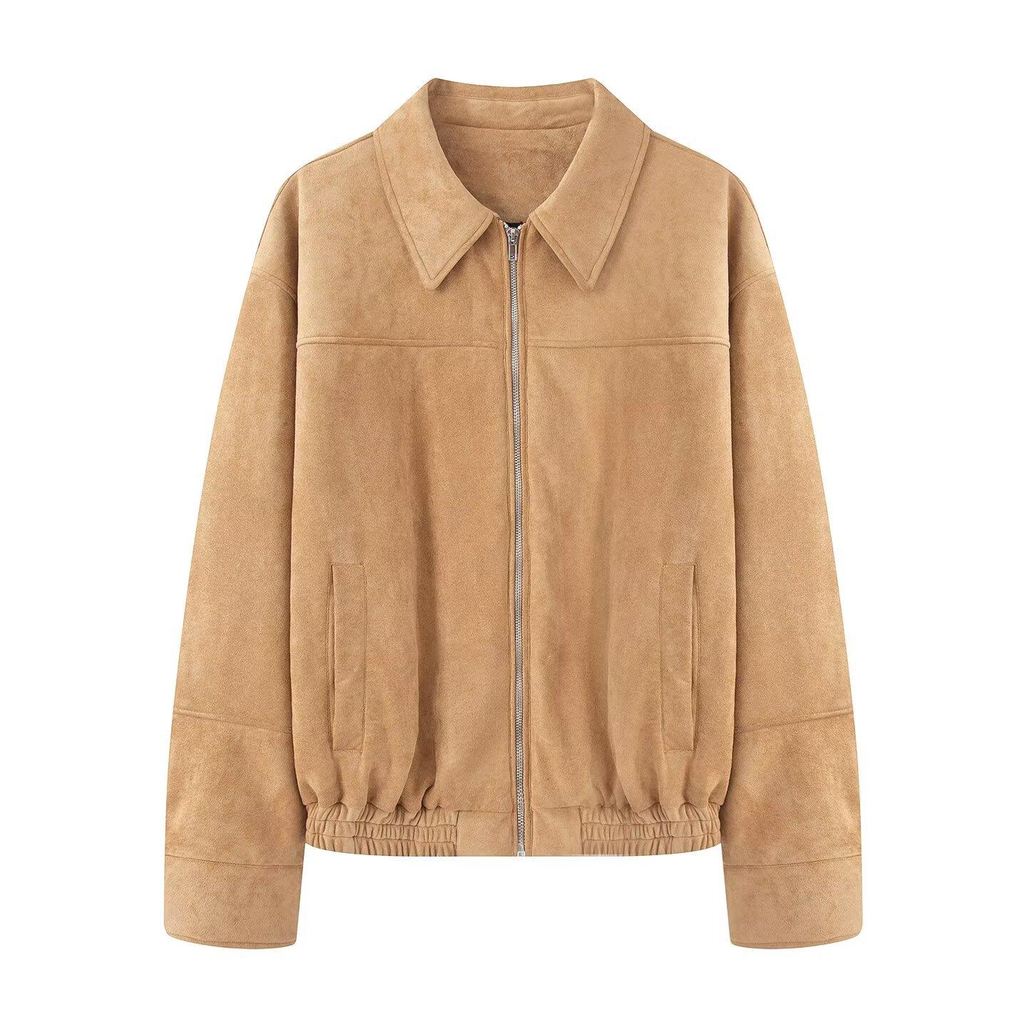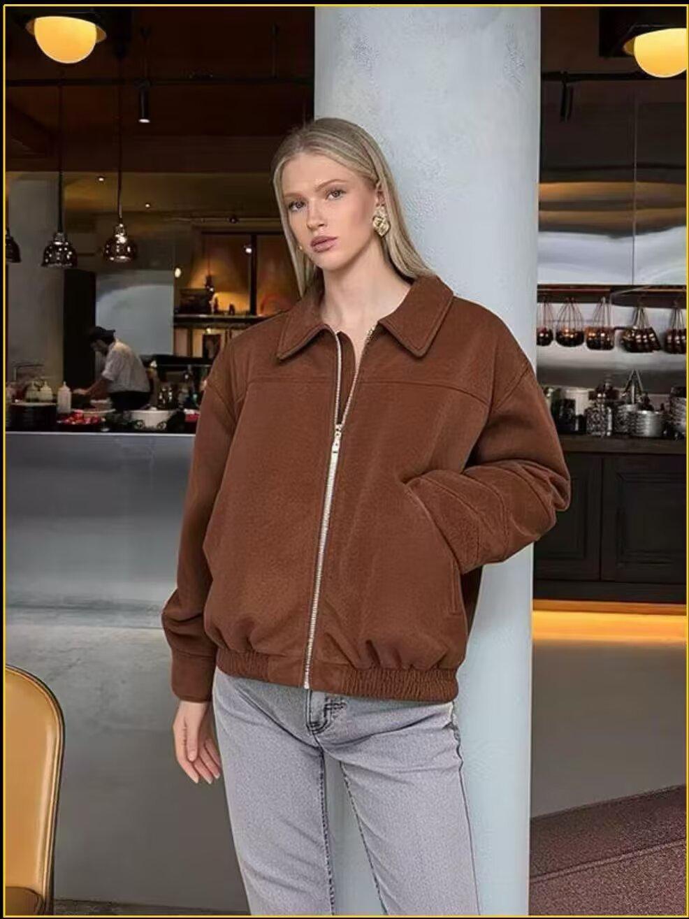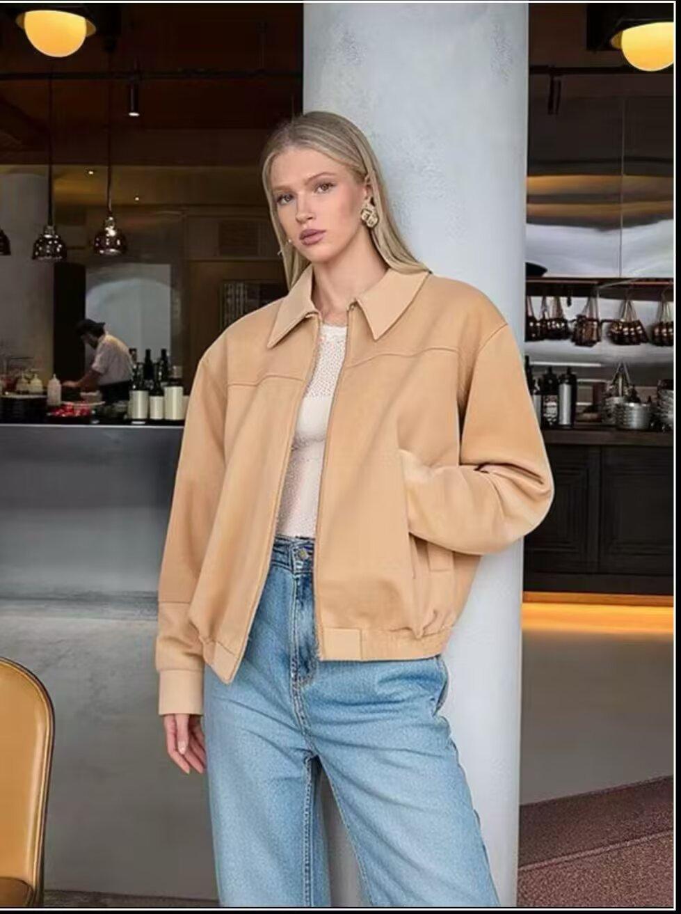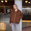 2025 Otoño/Invierno Nuevo Chaqueta Bomber Casual de Gamuza Transfronteriza Europea y Americana para Mujer w034 25140