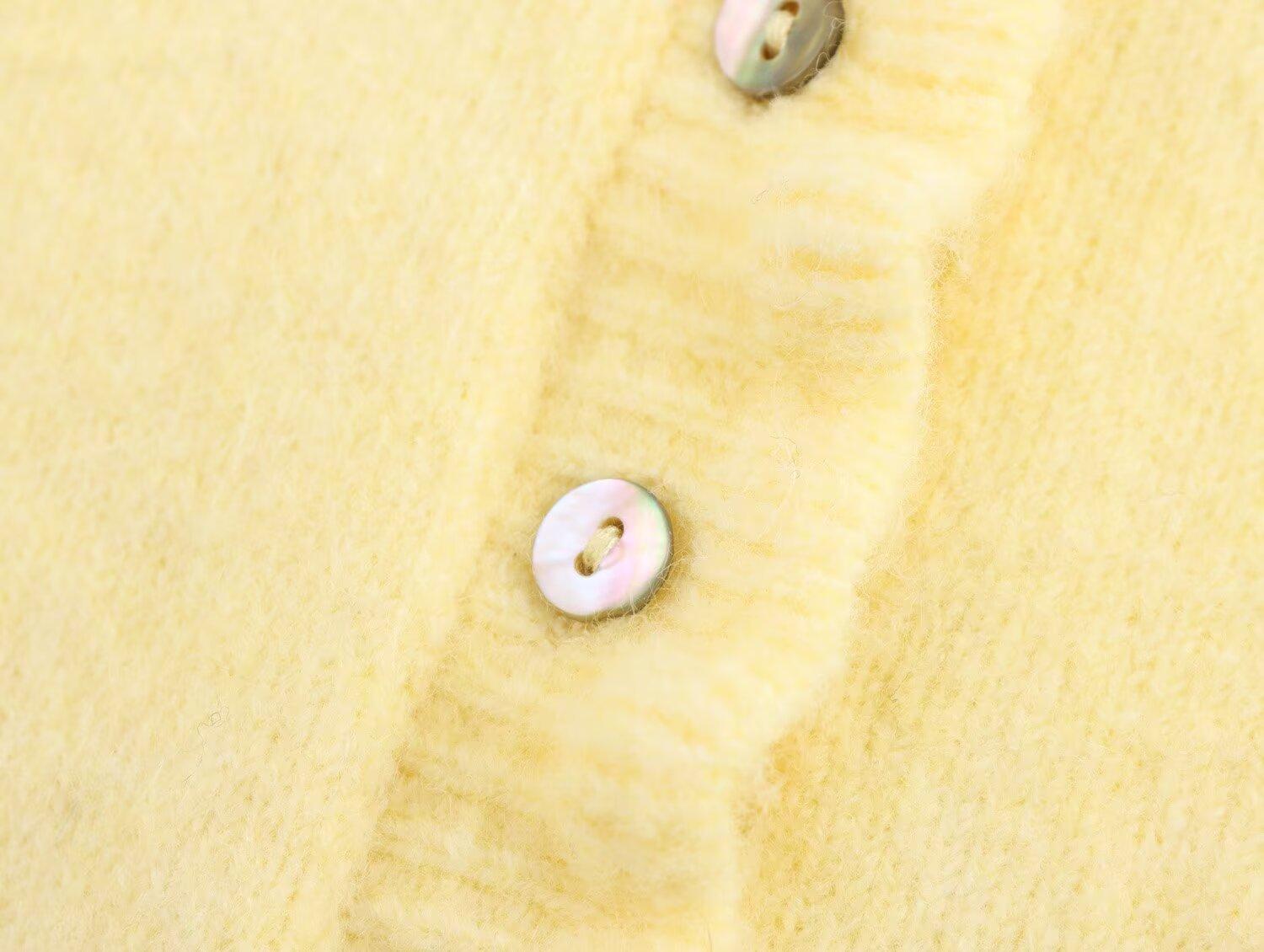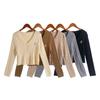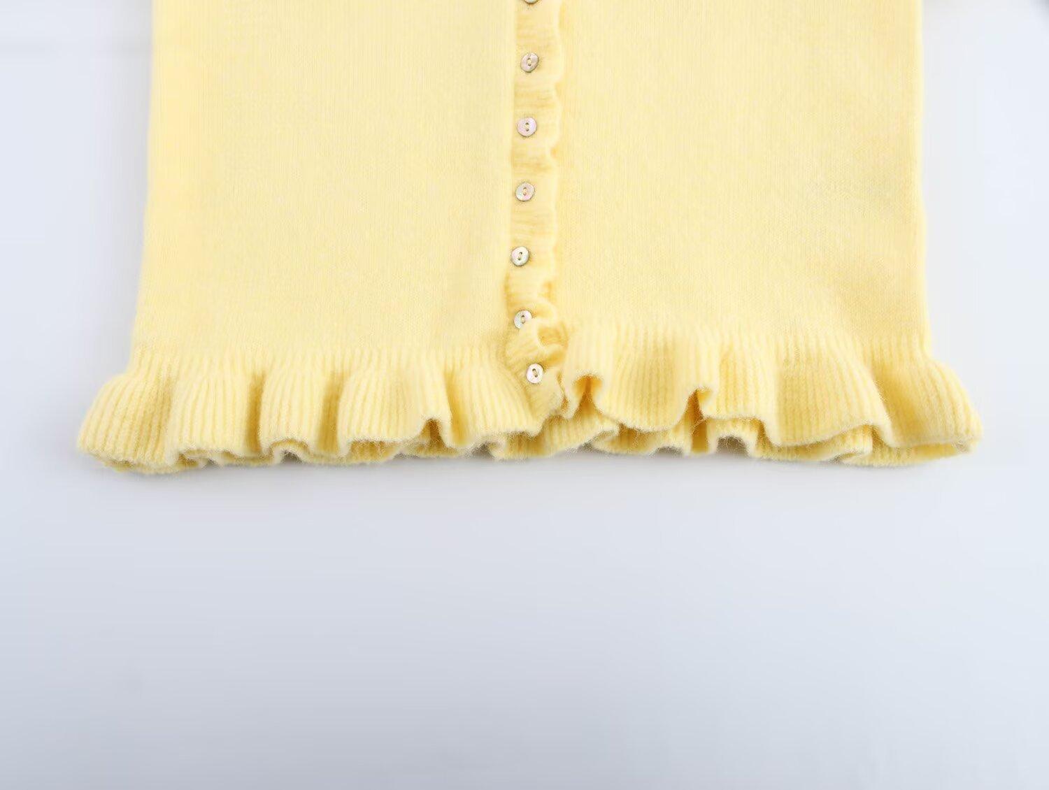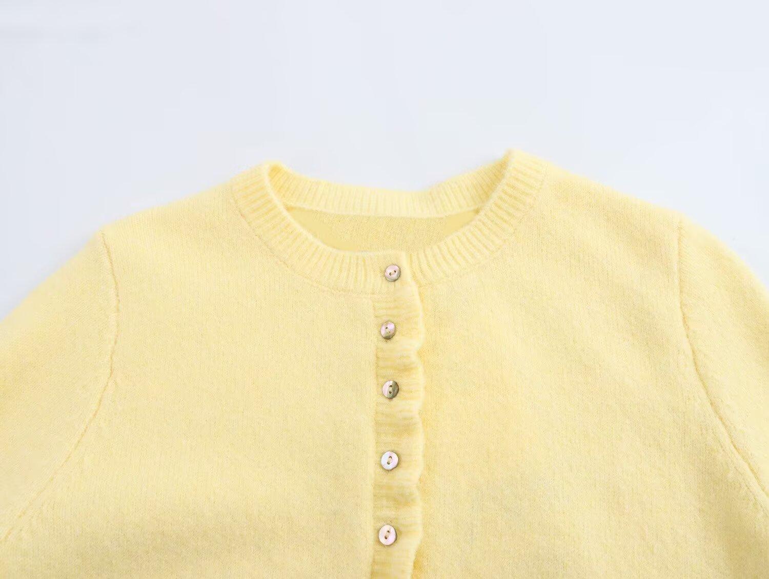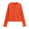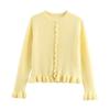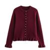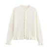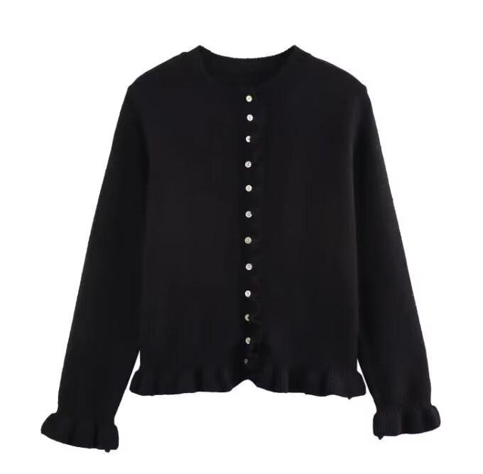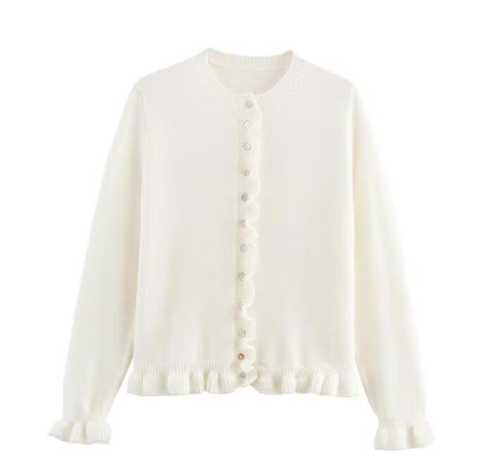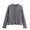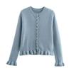 Suéter de punto de cuello redondo estilo europeo y americano con diseño de nicho y botonadura sencilla con volantes para mujer, primavera y otoño, comercio exterior para mujer al por mayor