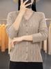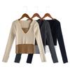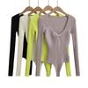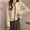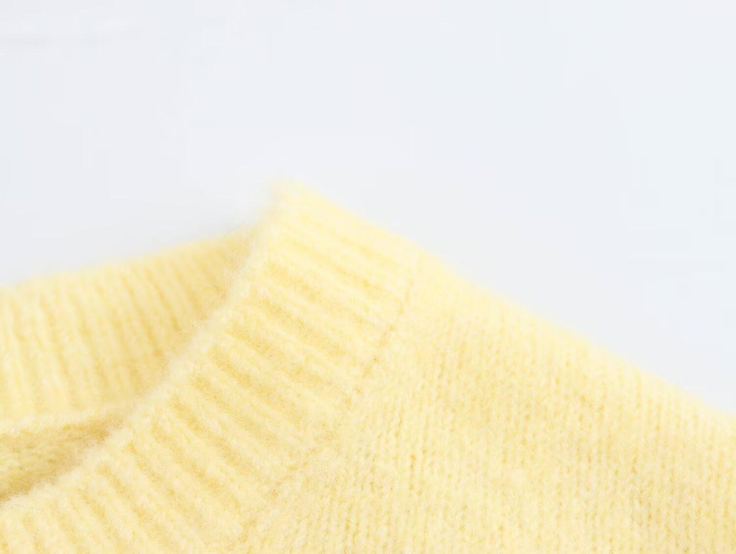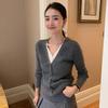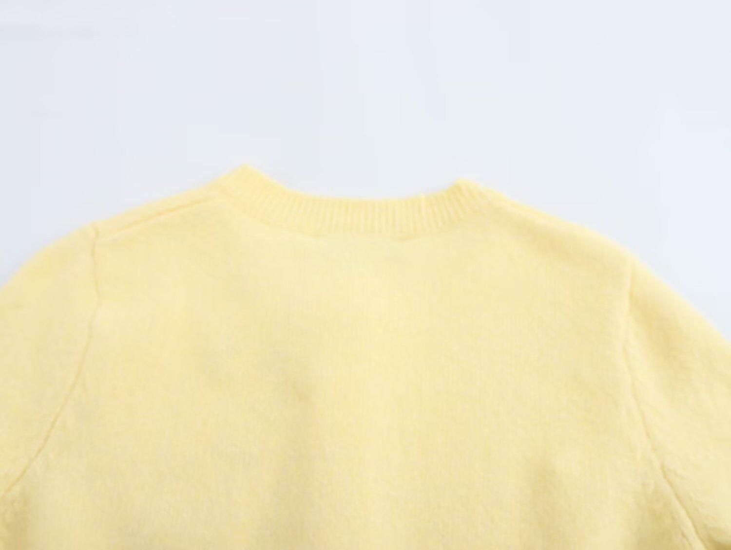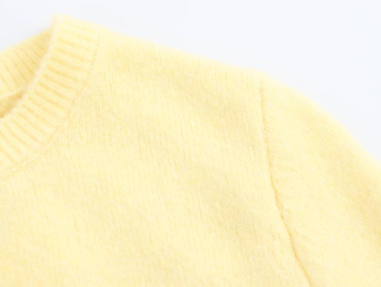 Suéter de punto de cuello redondo estilo europeo y americano con diseño de nicho y botonadura sencilla con volantes para mujer, primavera y otoño, comercio exterior para mujer al por mayor