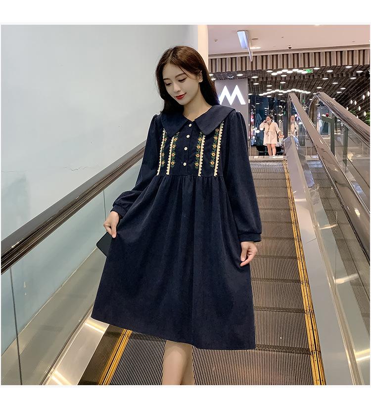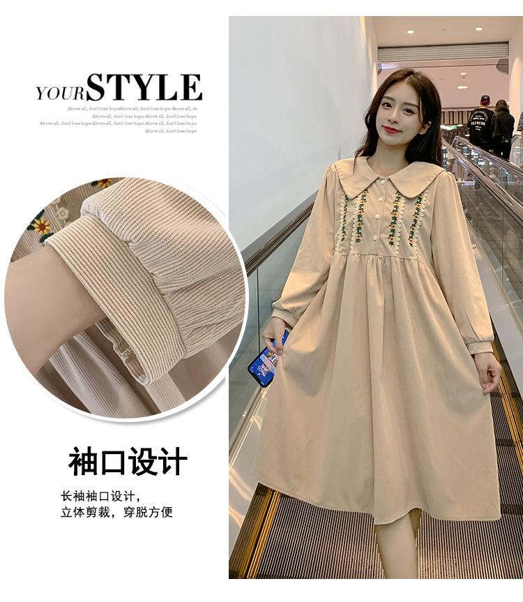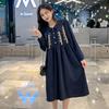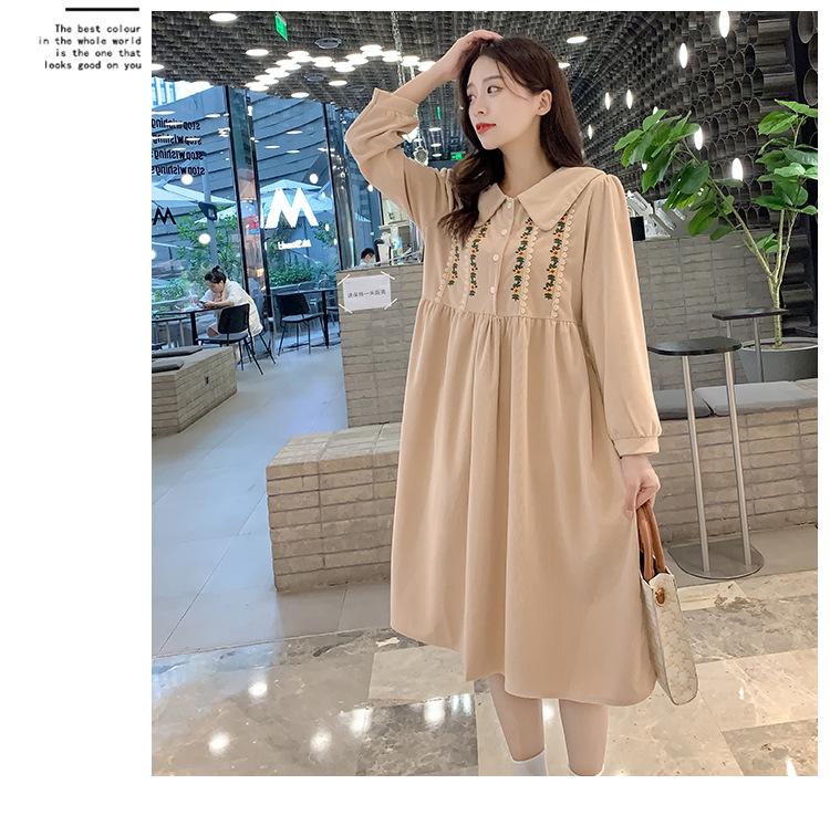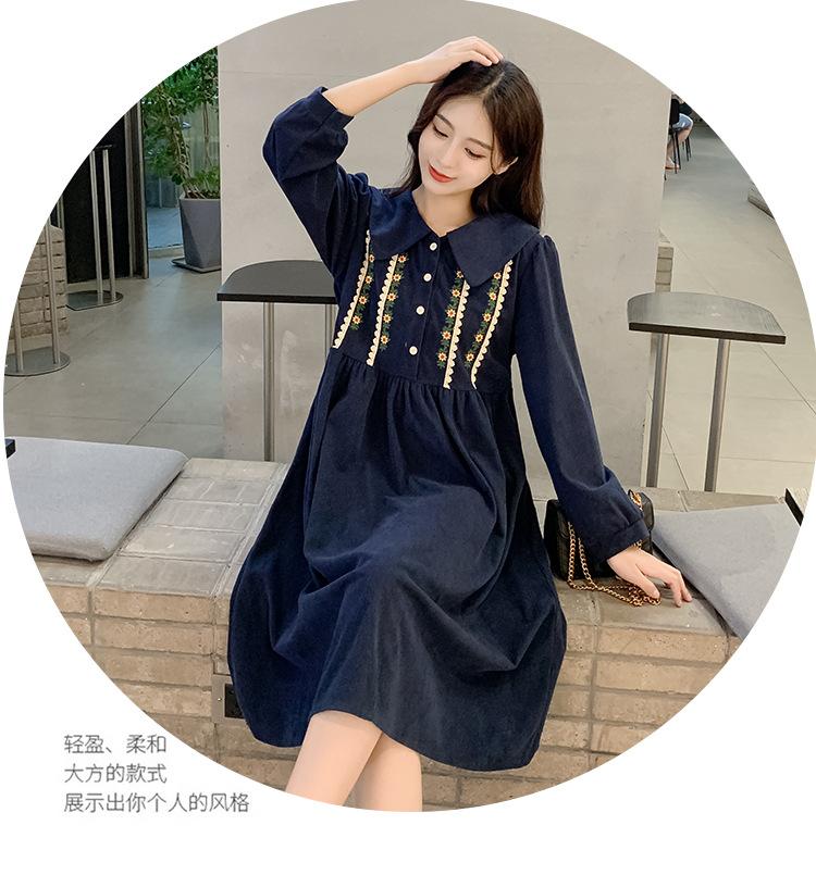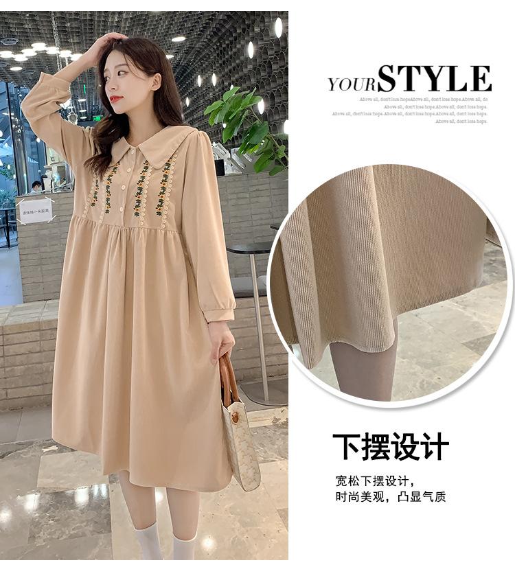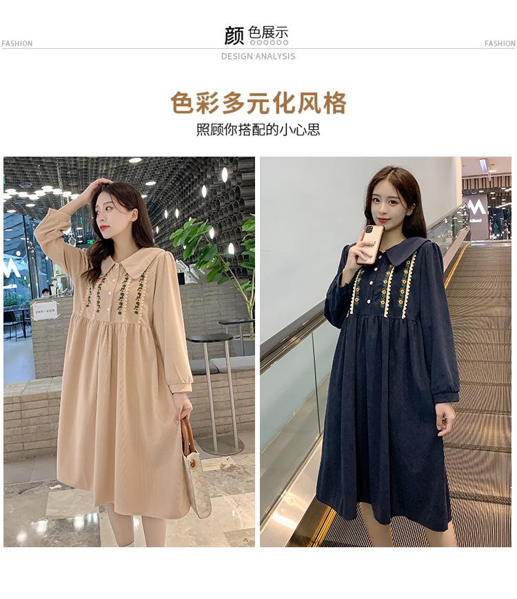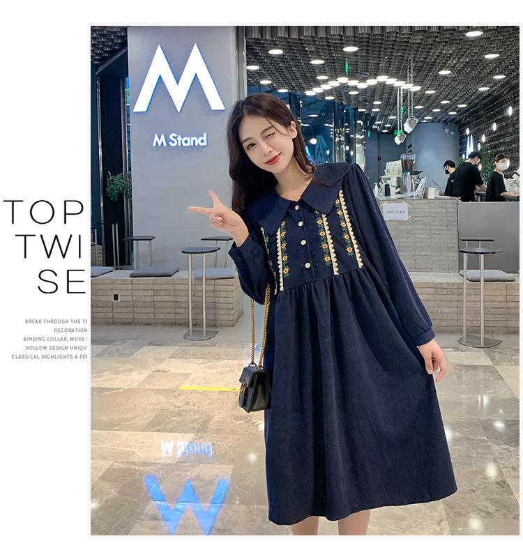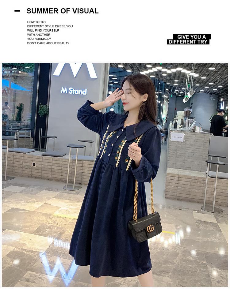 Ropa de maternidad primavera nueva dulce reductora de edad pana bordada holgada talla grande vestido para mujeres embarazadas hebilla abierta lactancia