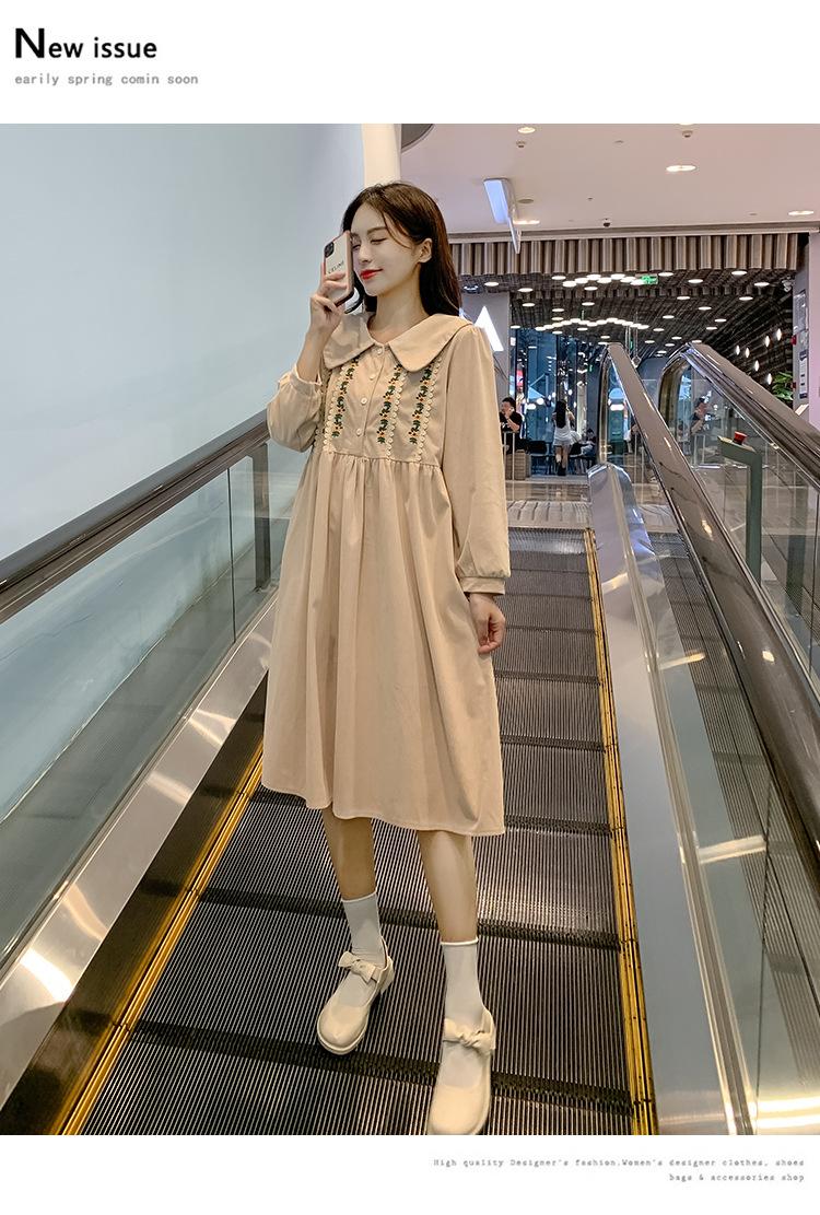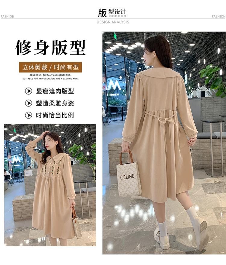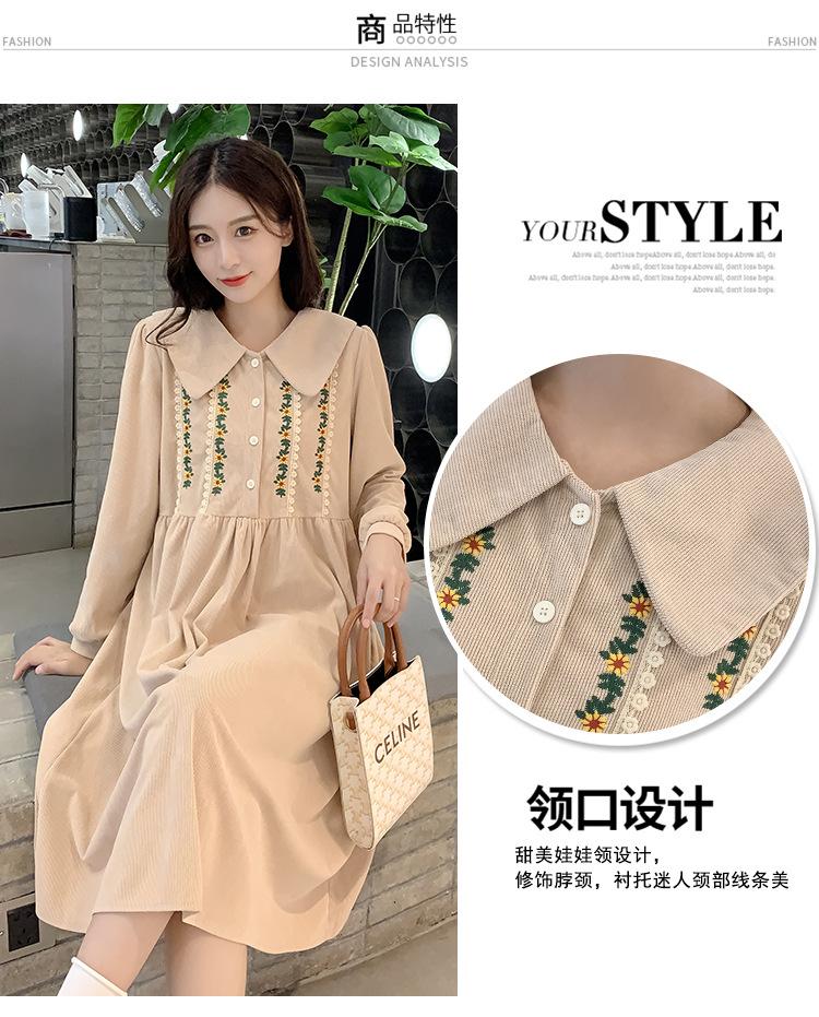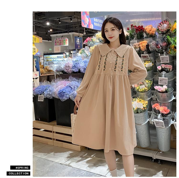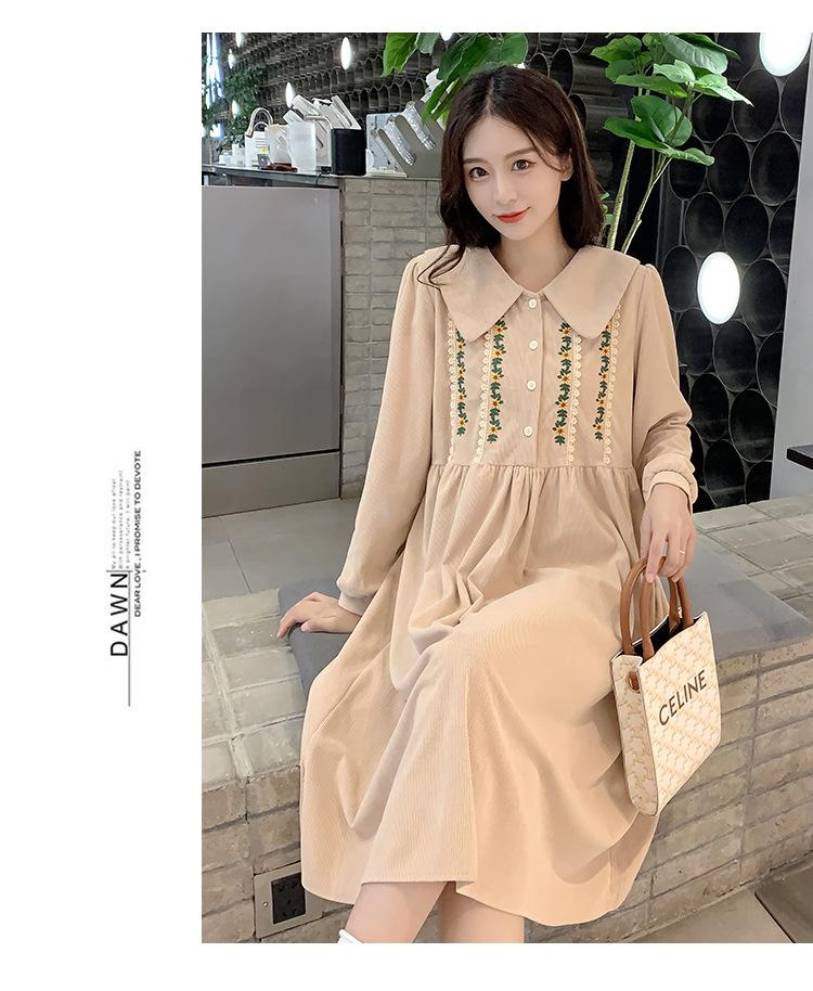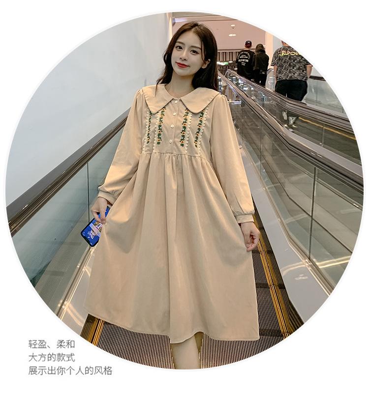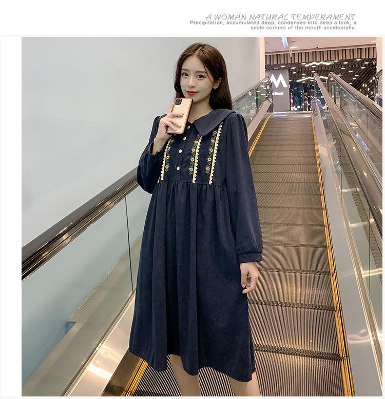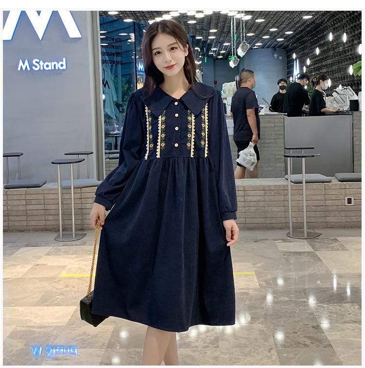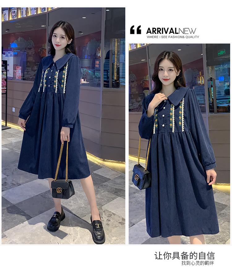 Ropa de maternidad primavera nueva dulce reductora de edad pana bordada holgada talla grande vestido para mujeres embarazadas hebilla abierta lactancia