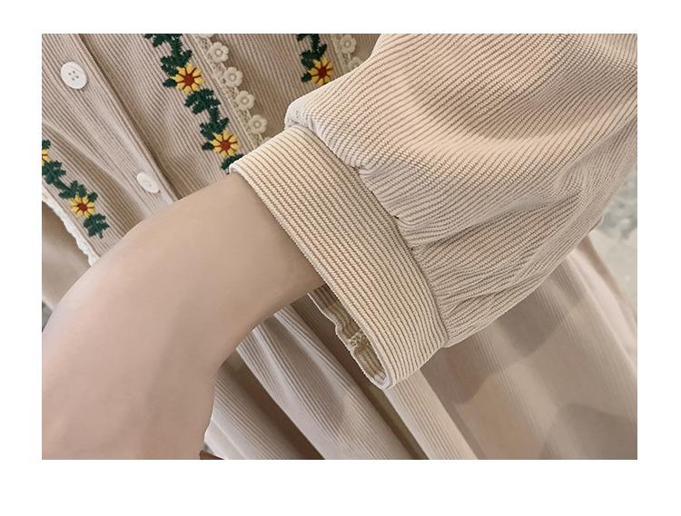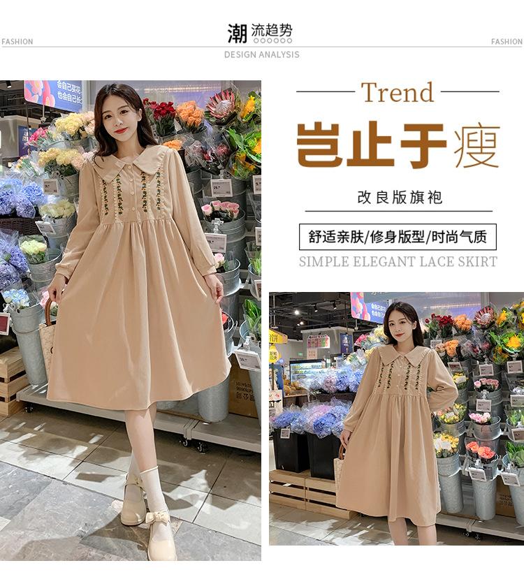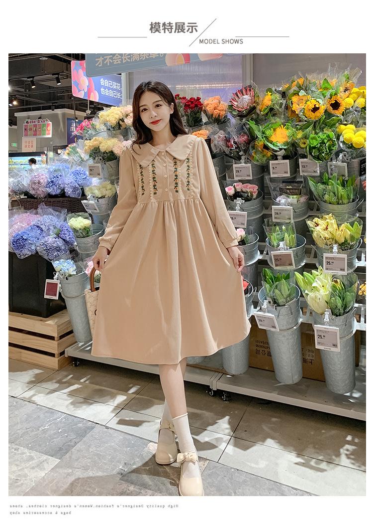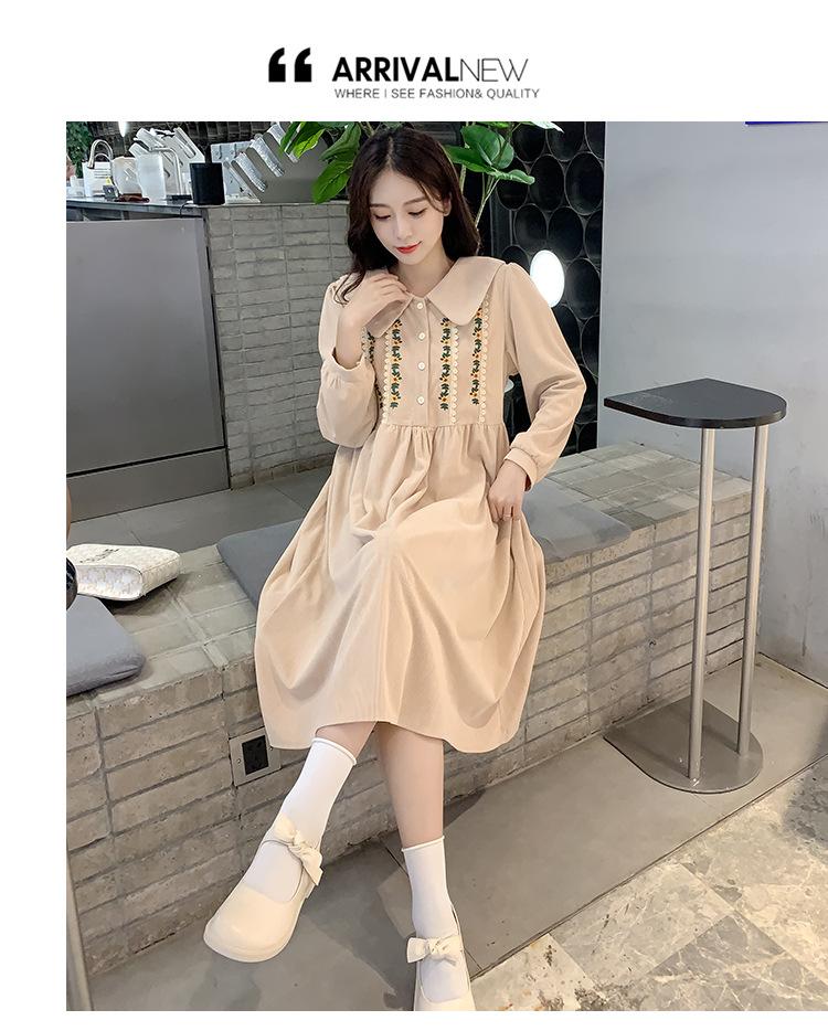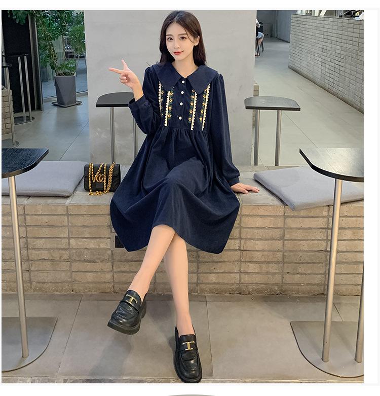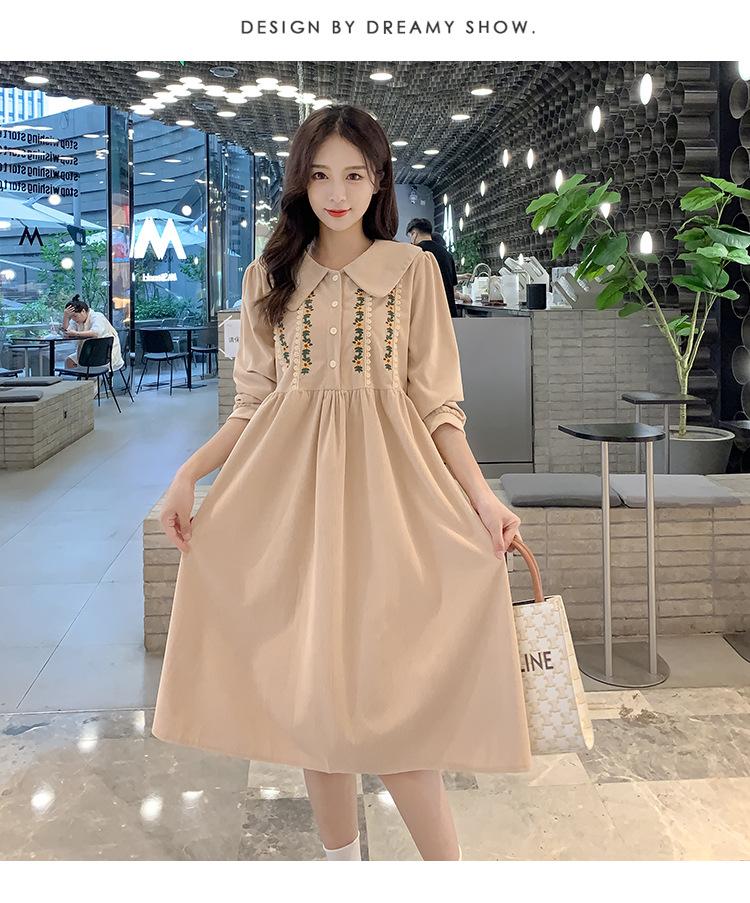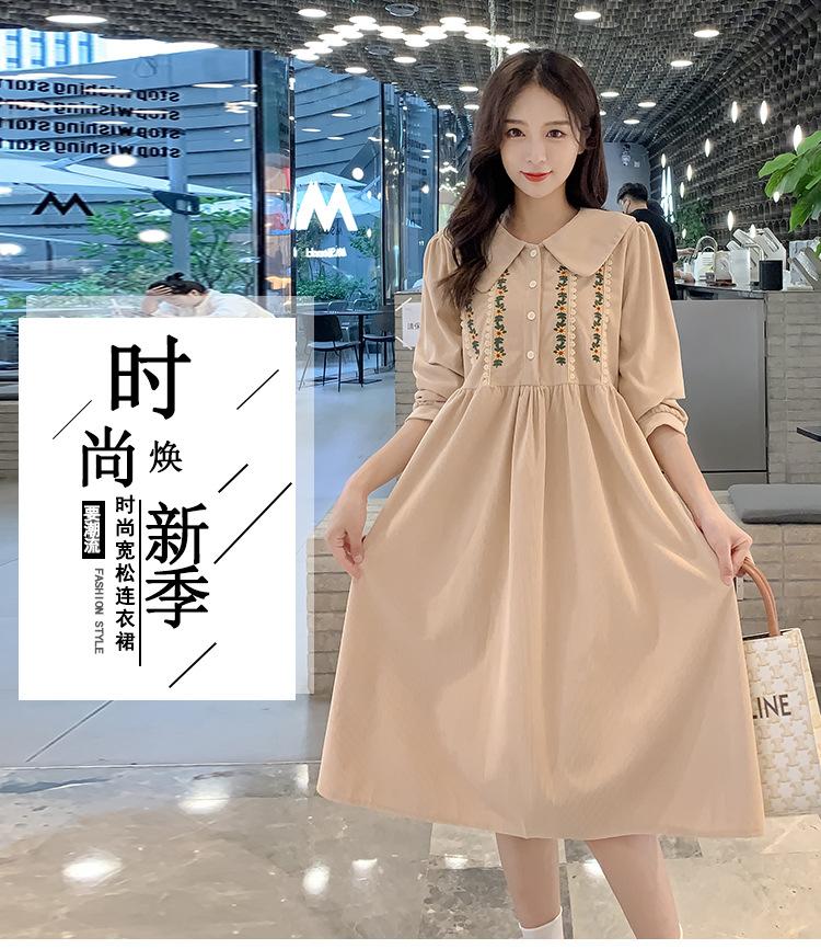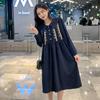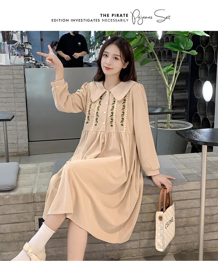 Ropa de maternidad primavera nueva dulce reductora de edad pana bordada holgada talla grande vestido para mujeres embarazadas hebilla abierta lactancia