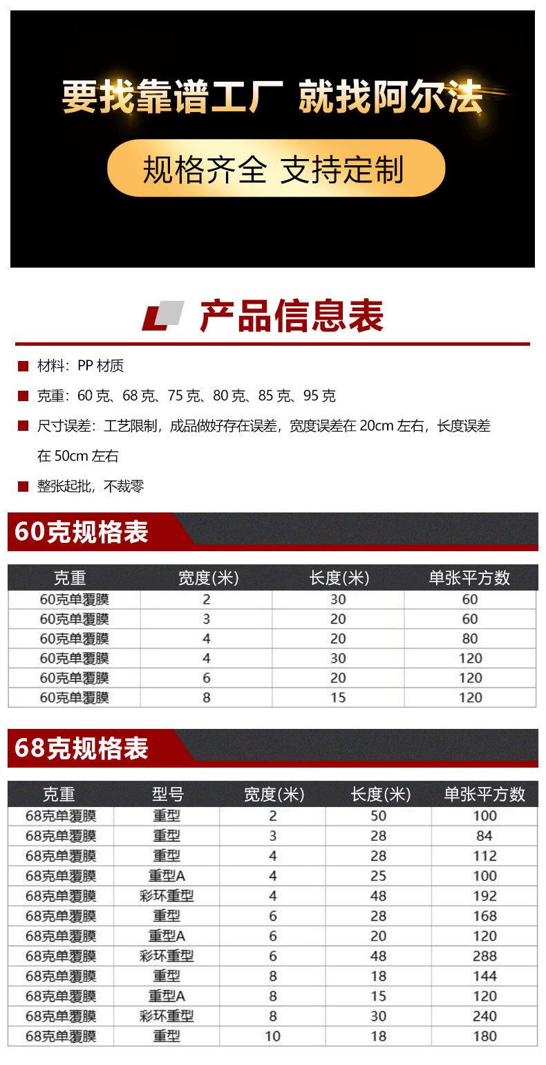PP 60g, PP 68g, PP 75g, PP 80g, PP 85g, PP 95g, PE 100g, PE 120g, PE 150g, Engineering style pp single coating per square meter