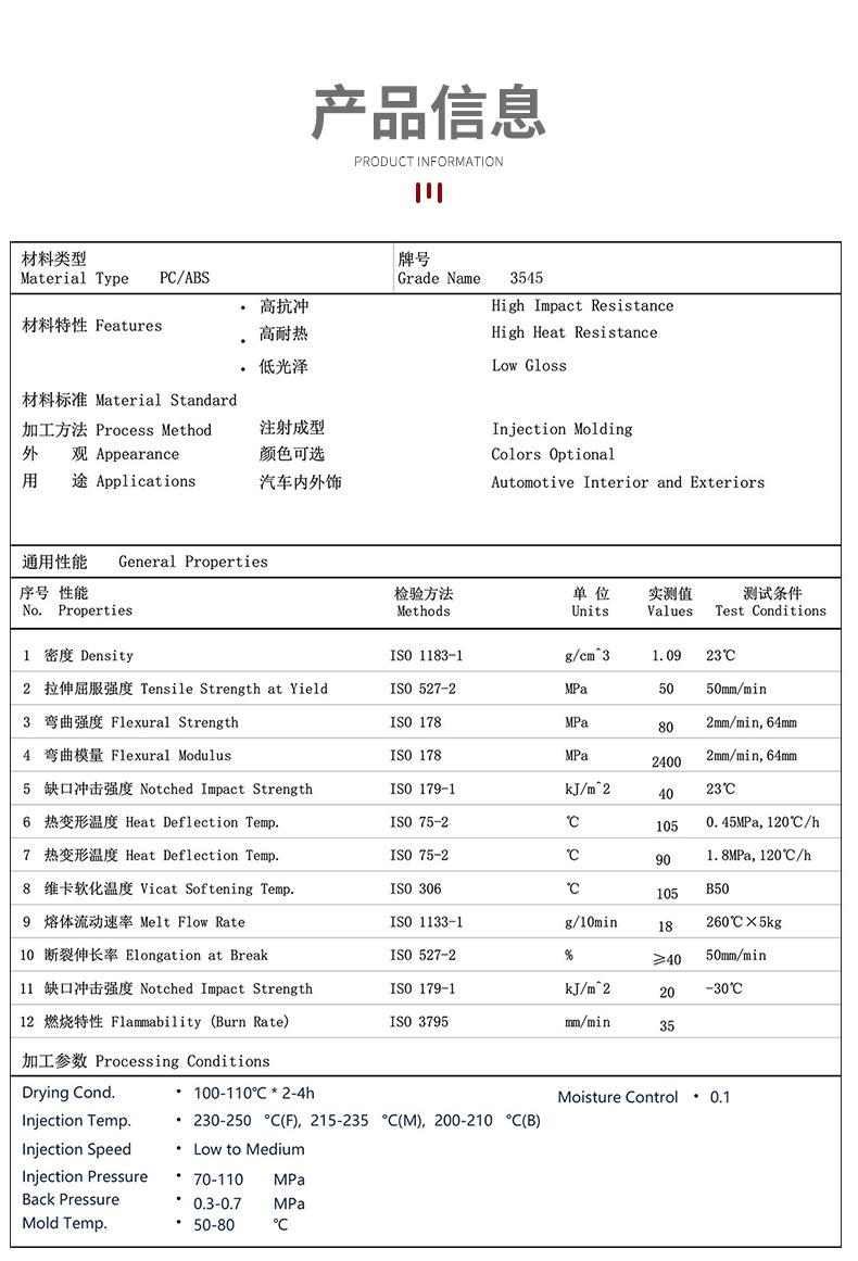 [Ningbo Yunri Nuevos Materiales] Pc/Abs-3585 Autopartes, Electrodomésticos, Digital 3C y Eléctrico y Otros Campos