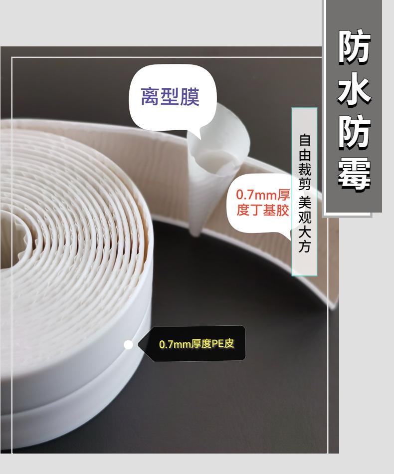 Pe Caucho Butílico Sellado de Juntas Encimera de Fregadero Impermeable, Resistente al Aceite, Antimanchas y Antimoho Tira Selladora de Butilo