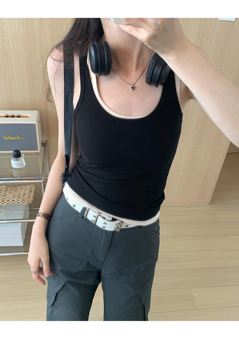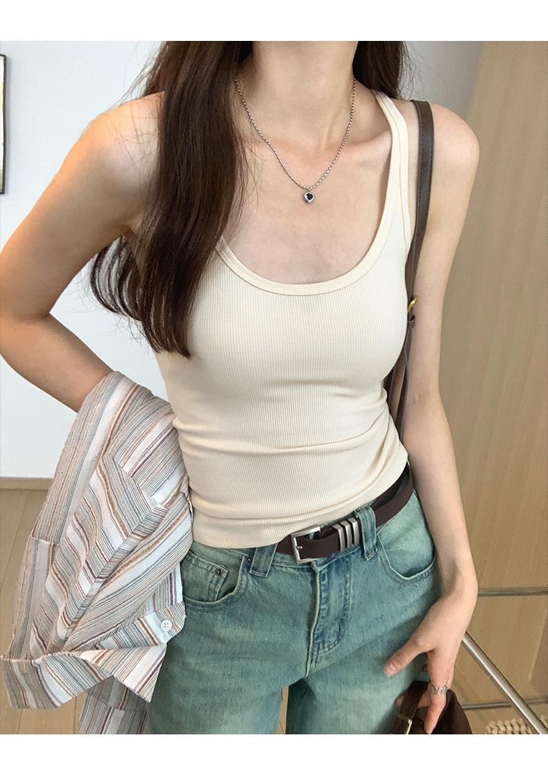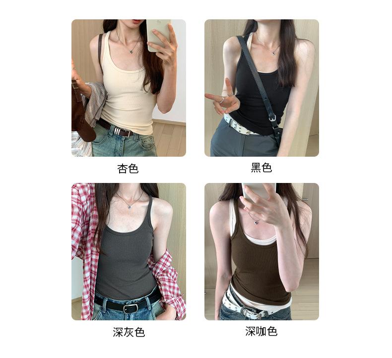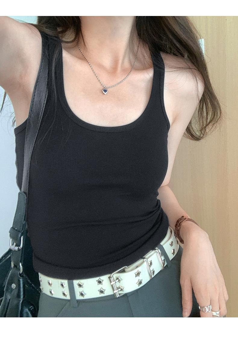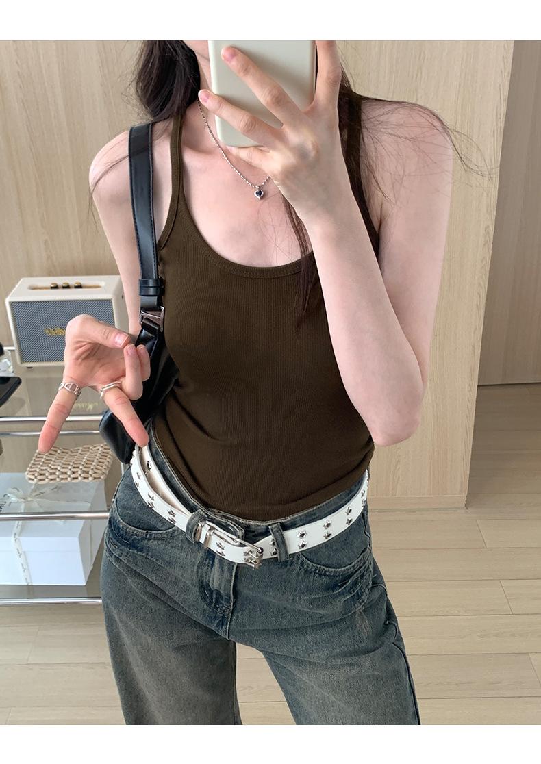 Foto real para todo tipo de ropa exterior, camisola de chica hot, verano 2024, nuevo top ajustado sin mangas con cuello en U