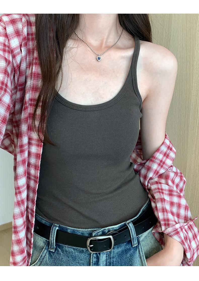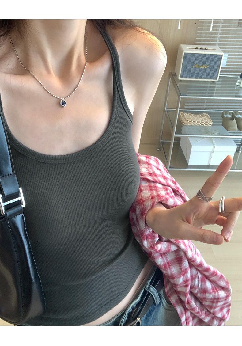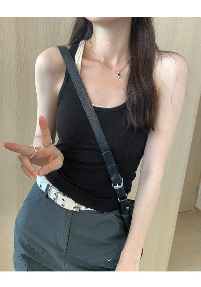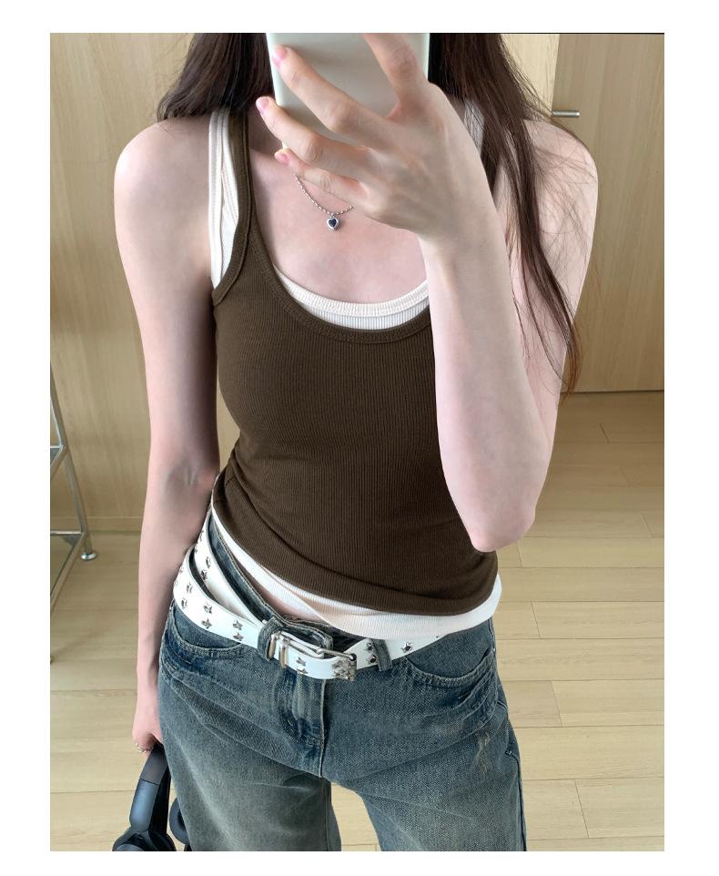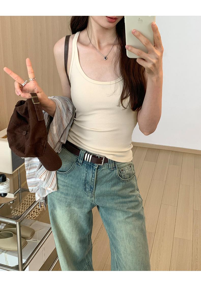 Foto real para todo tipo de ropa exterior, camisola de chica hot, verano 2024, nuevo top ajustado sin mangas con cuello en U