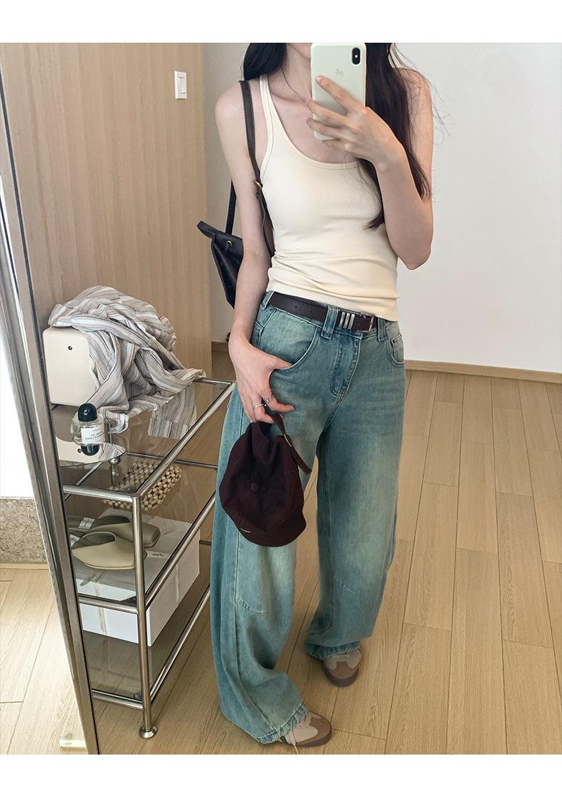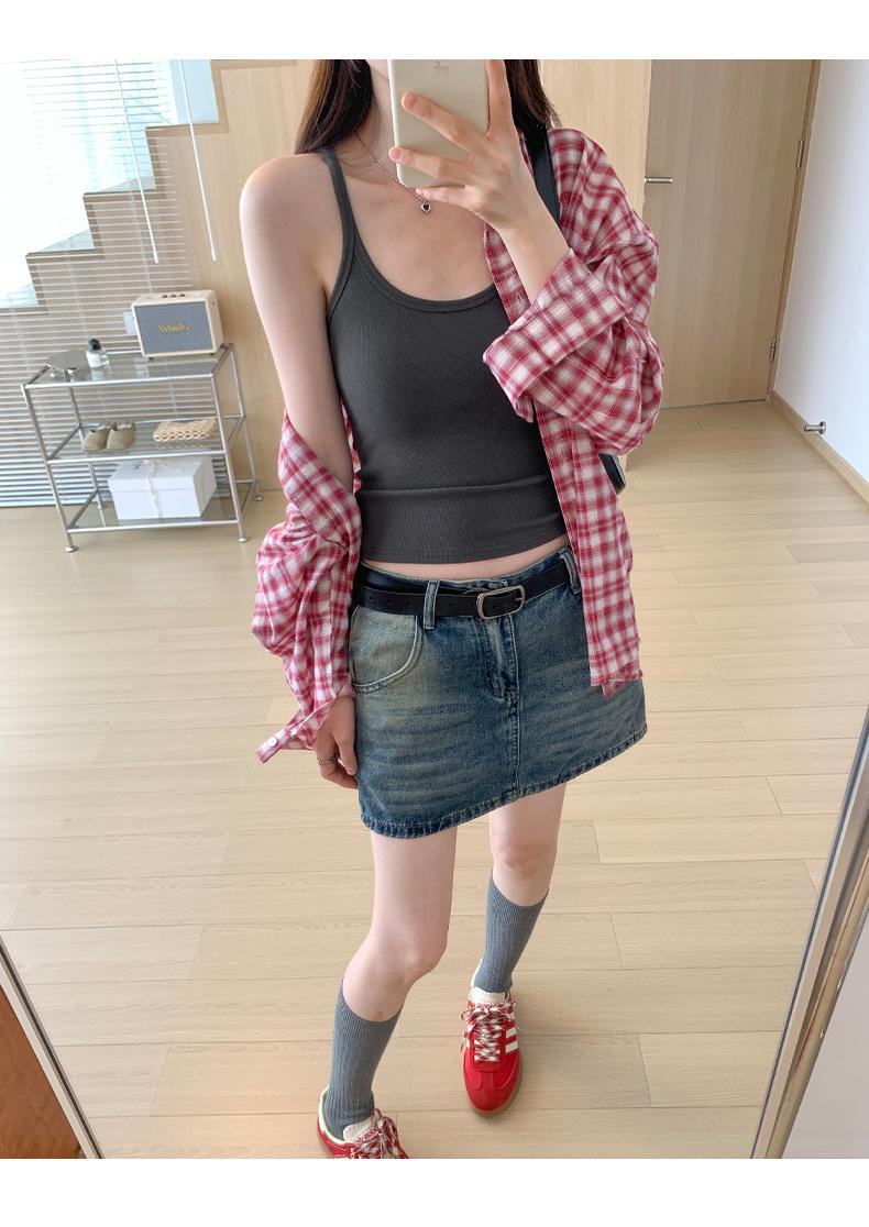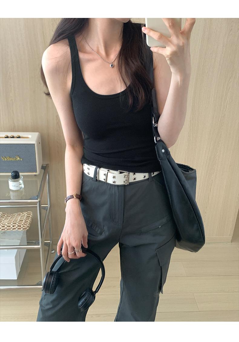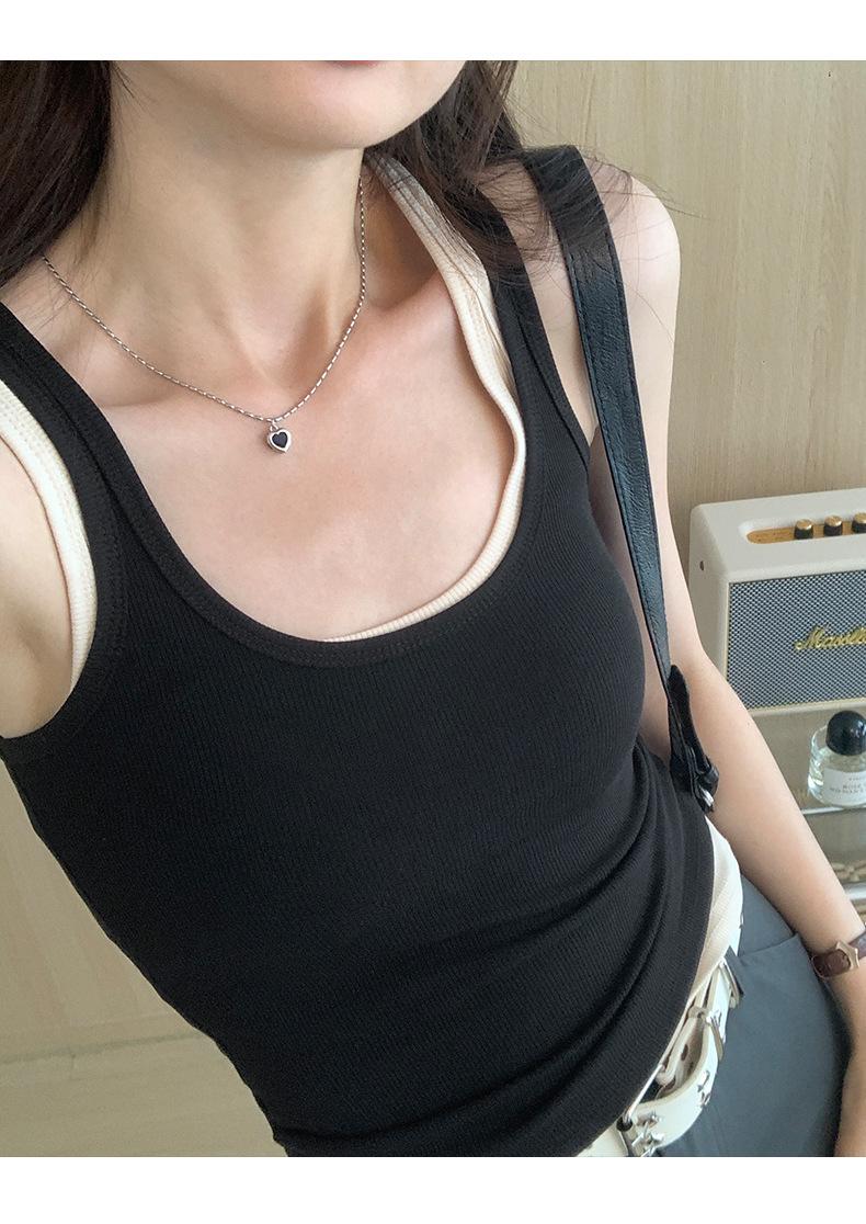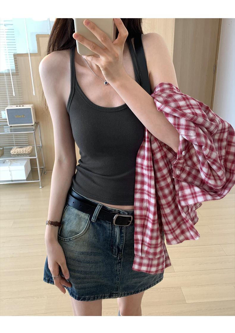 Foto real para todo tipo de ropa exterior, camisola de chica hot, verano 2024, nuevo top ajustado sin mangas con cuello en U