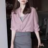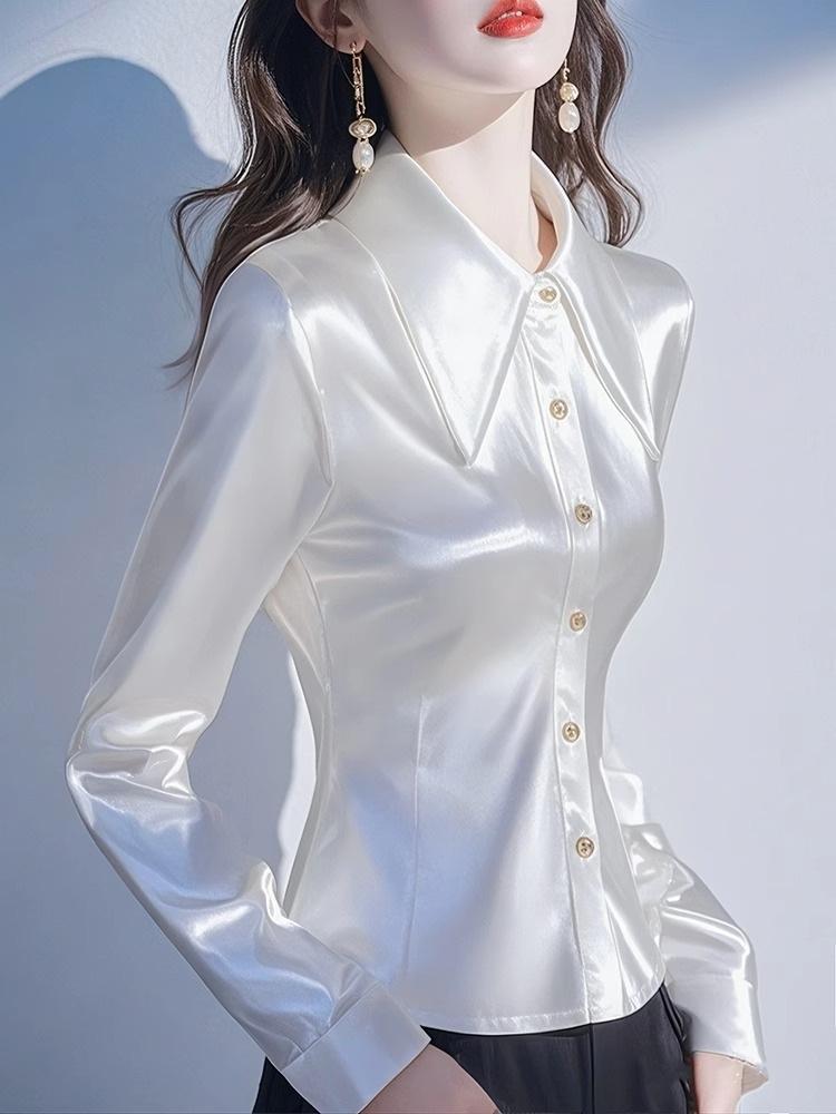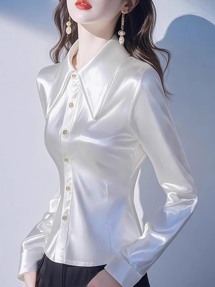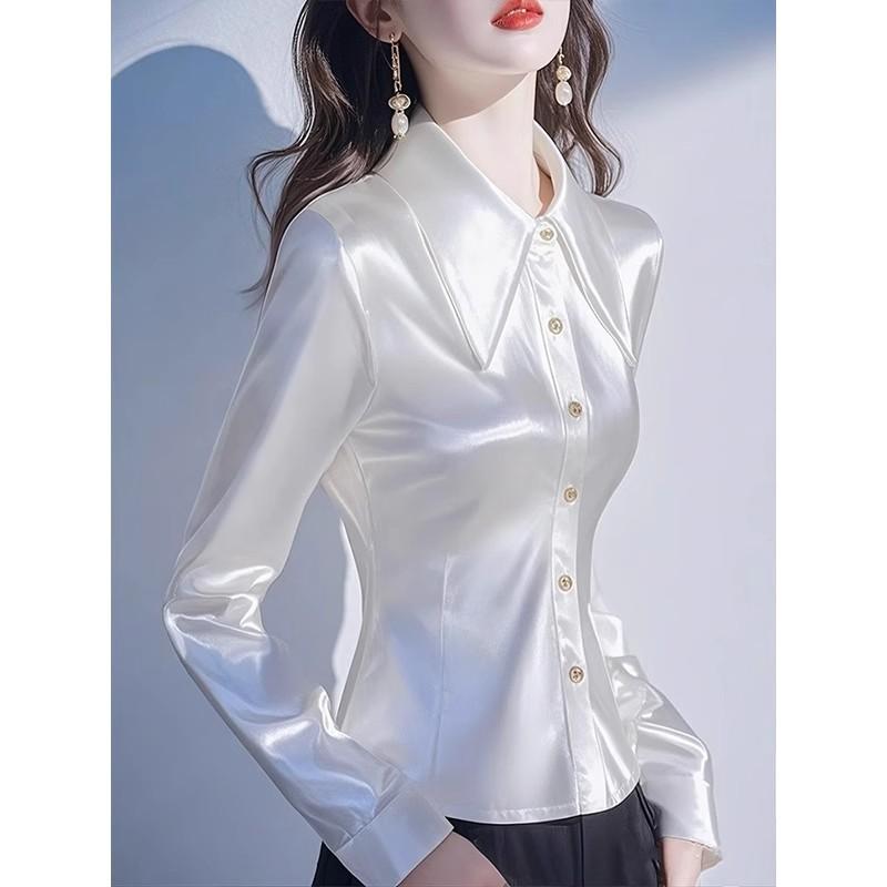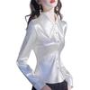 Camisa de Satén Francés con Cuello Vuelto Manga Larga Mujer 2025 Nuevo Diseño Primavera/Otoño Nicho Chic Blusa Top Ajustada a la Cintura