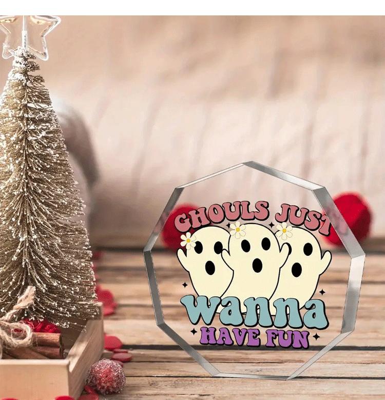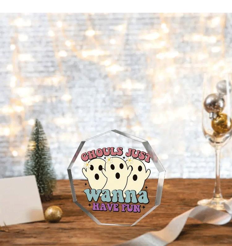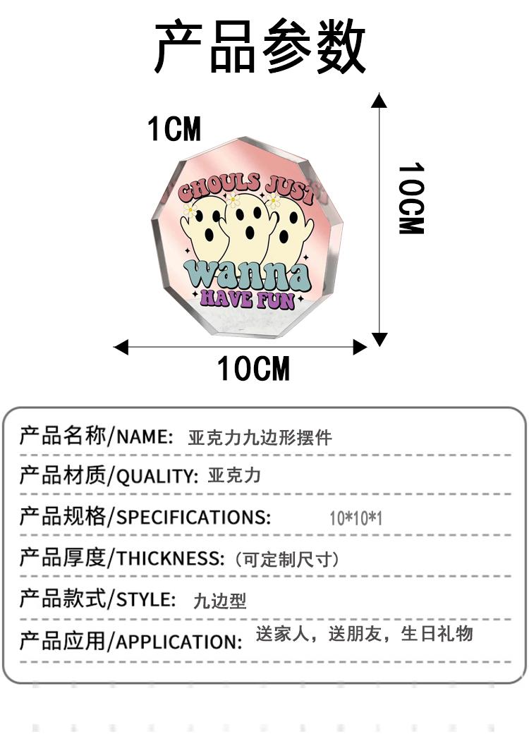 Amazon Transfronterizo Nuevo Producto Más Vendido Acrílico Transparente de Nueve Lados Halloween Adornos Artesanales para el Hogar