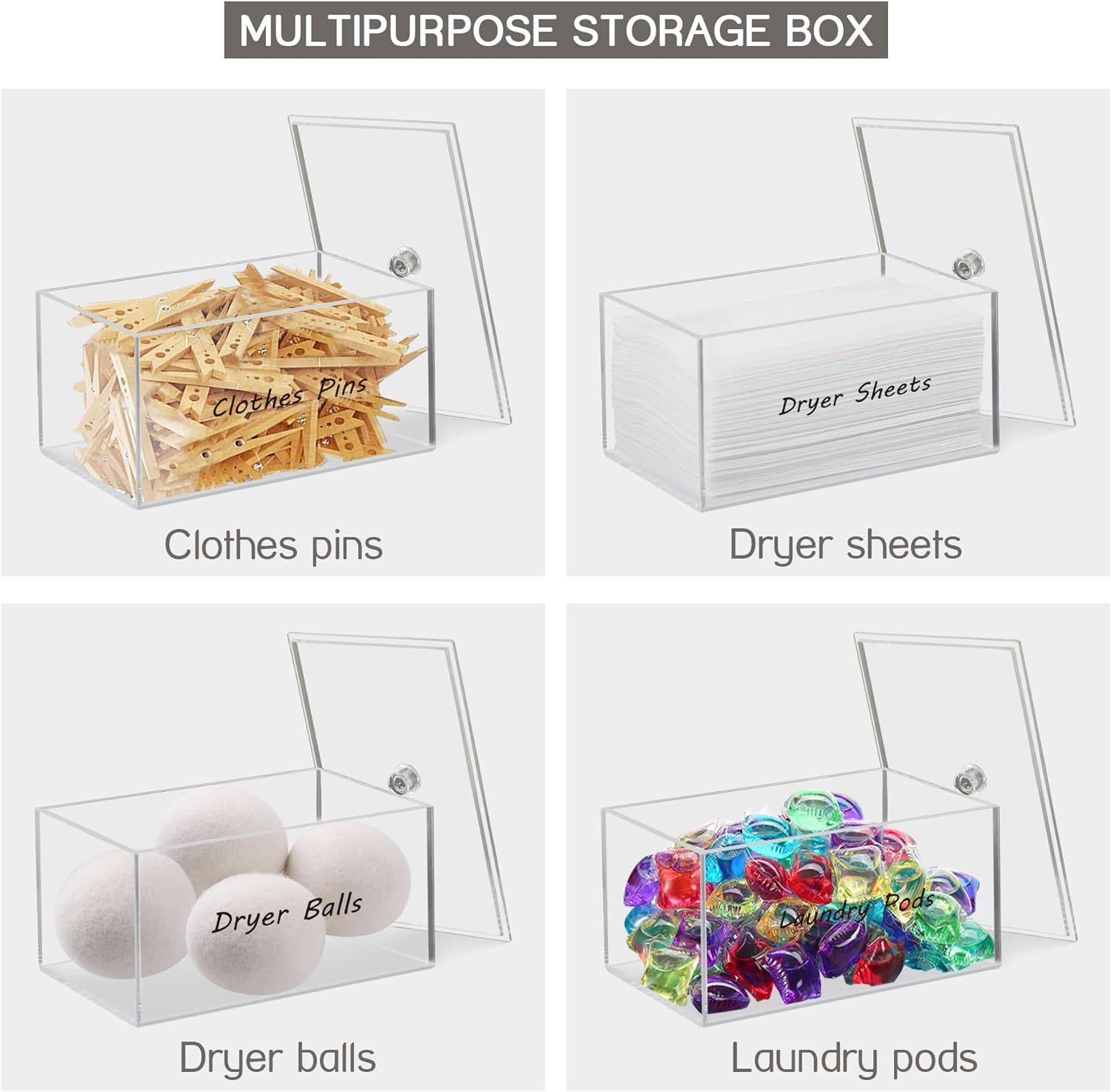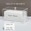 【Material Acrílico de Alta Calidad】El soporte para hojas de secadora está hecho de acrílico resistente de alta calidad de 4 mm, que luce limpio y súper elegante. Para que pueda ver a través de la caja y rellenar antes de que se acaben las hojas de secadora. Un lindo y de alta calidad contenedor para hojas de secadora hace que su cuarto de lavado luzca muy bien y organizado.