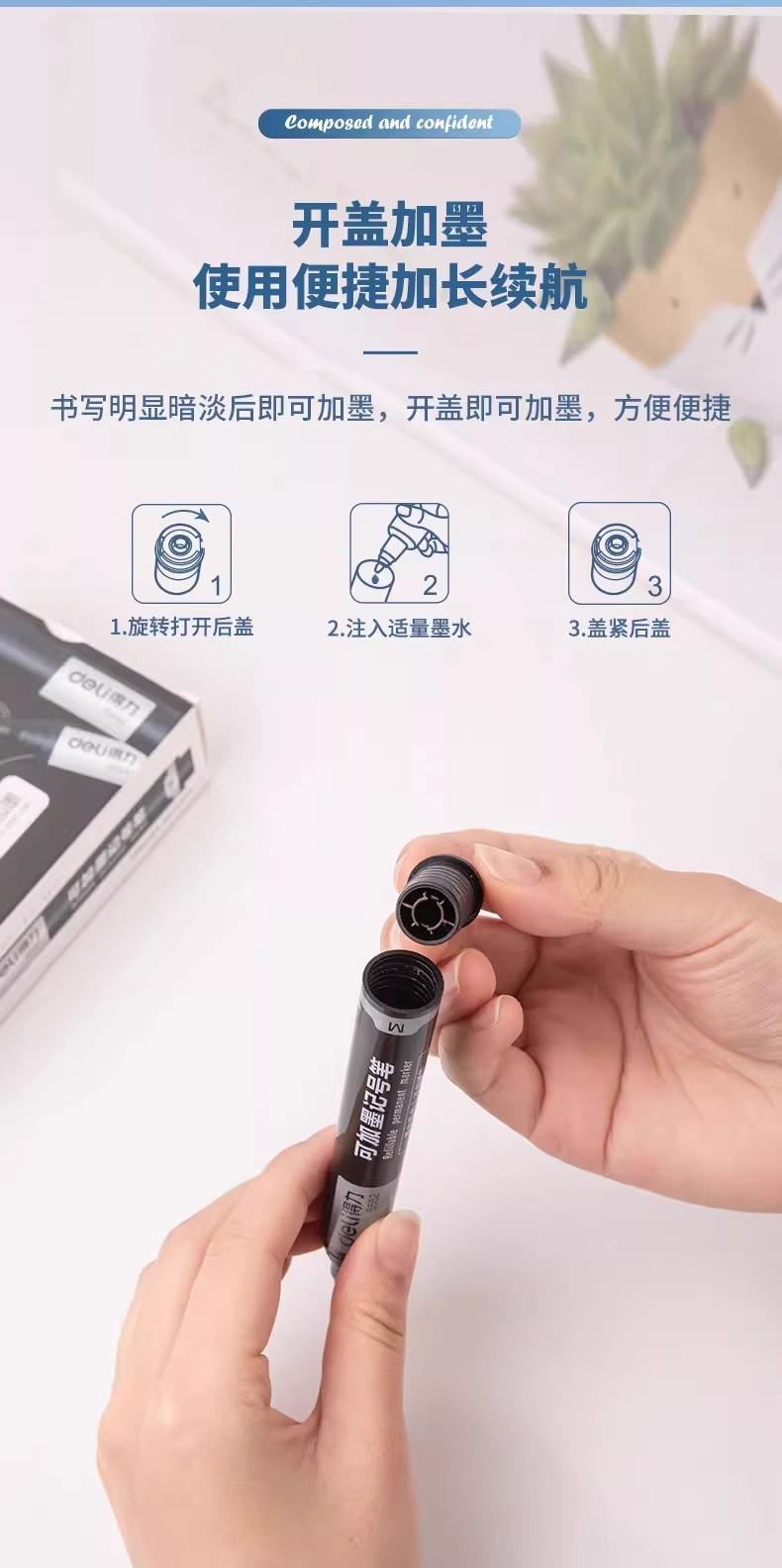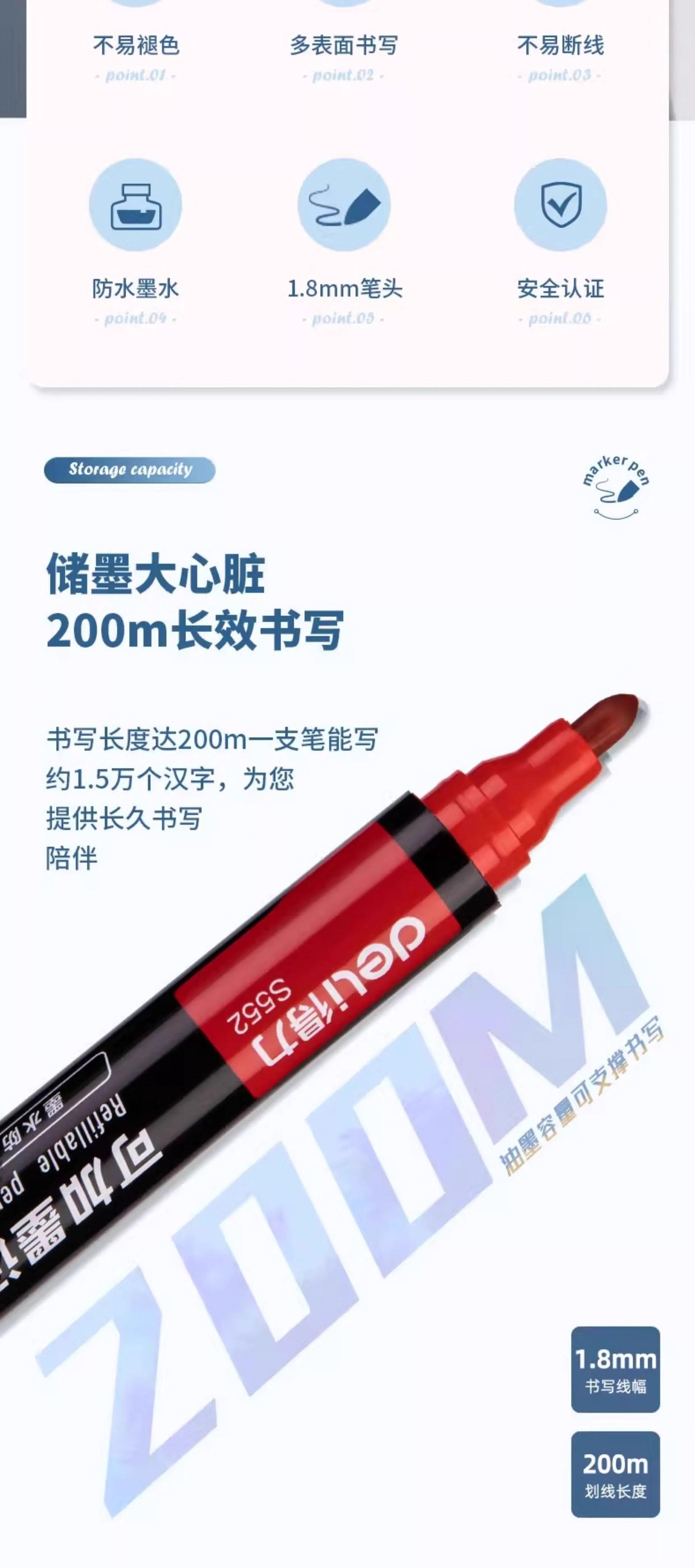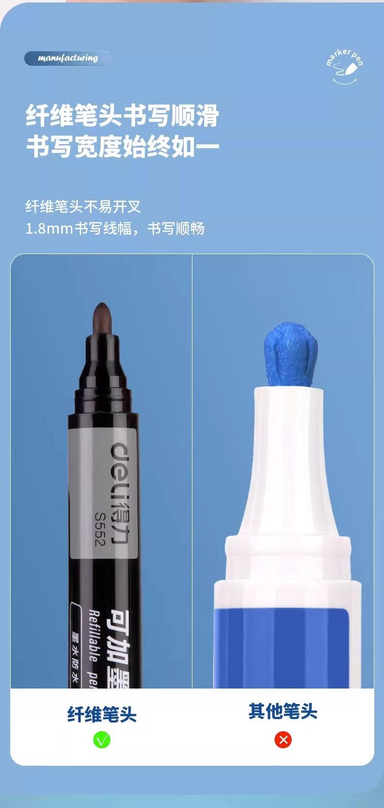 Marcador Deli S552 puede agregar tinta marcador aceitoso de punta gruesa 10 piezas/caja bolígrafo de escritura rápida de punta gruesa