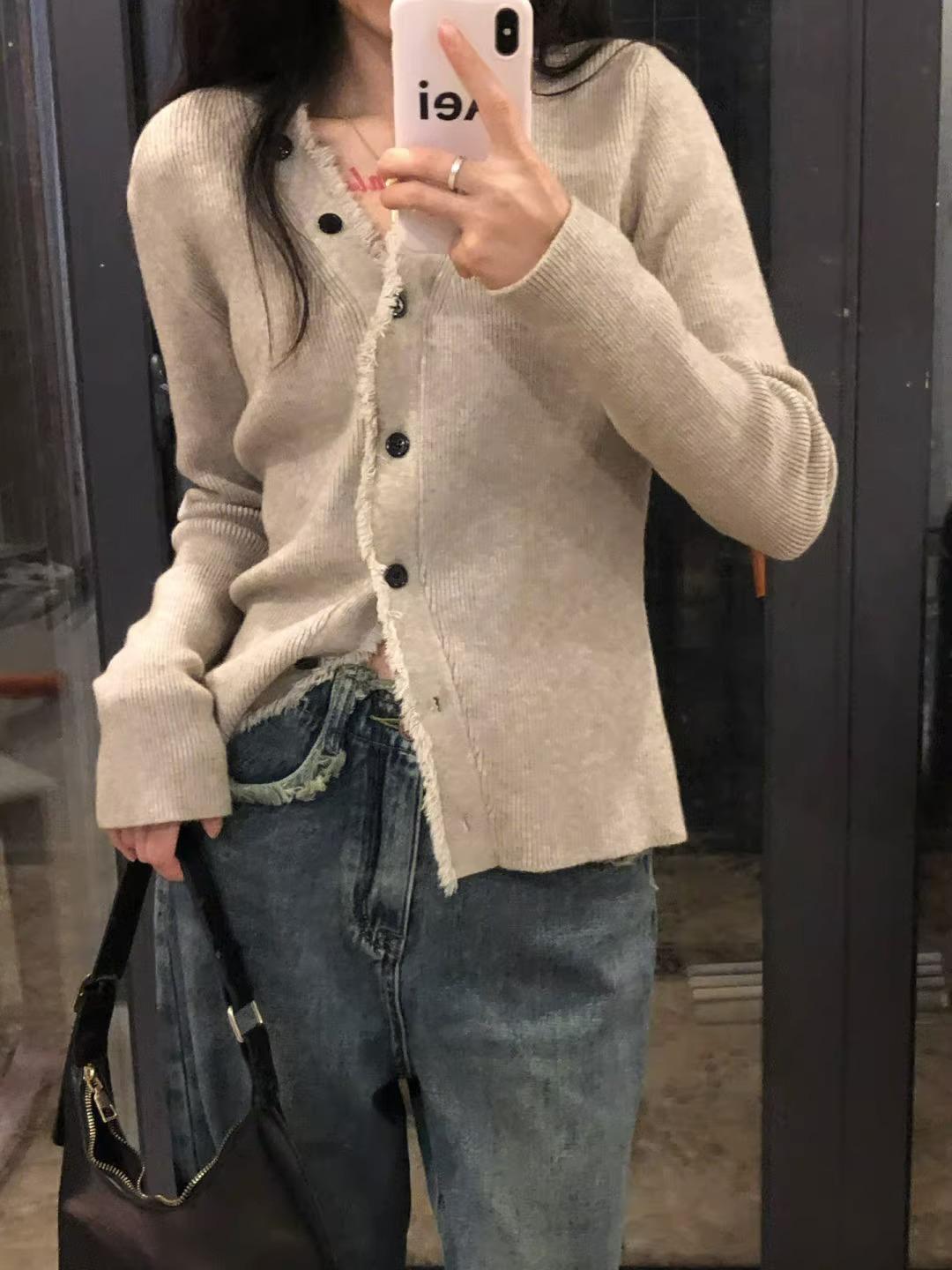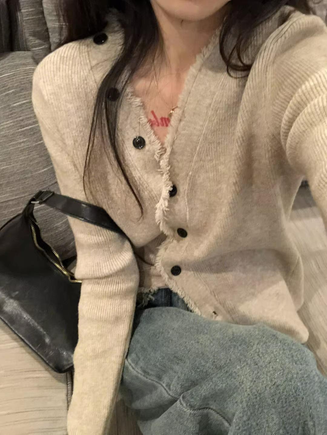 Cárdigan de punto con cuello en V para mujer otoño e invierno 2024 nuevo temperamento de corte ajustado abotonadura sencilla suéter interior abrigo base