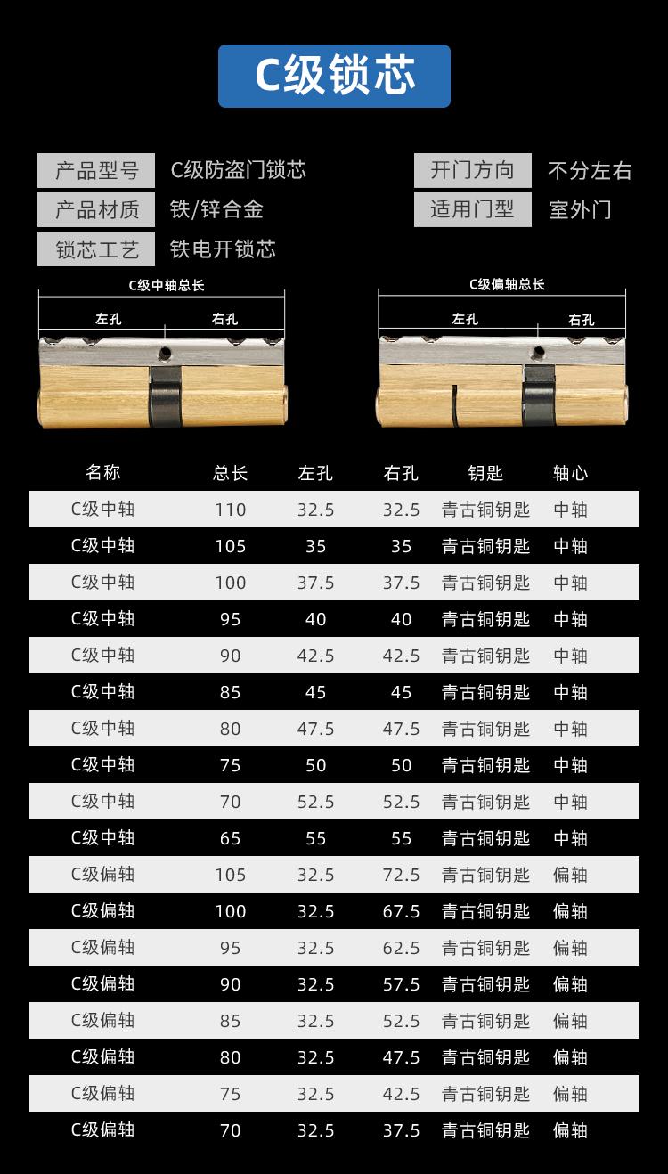 C- level lock cylinder length 65=32.5+32.5-55mm-Universal-with key