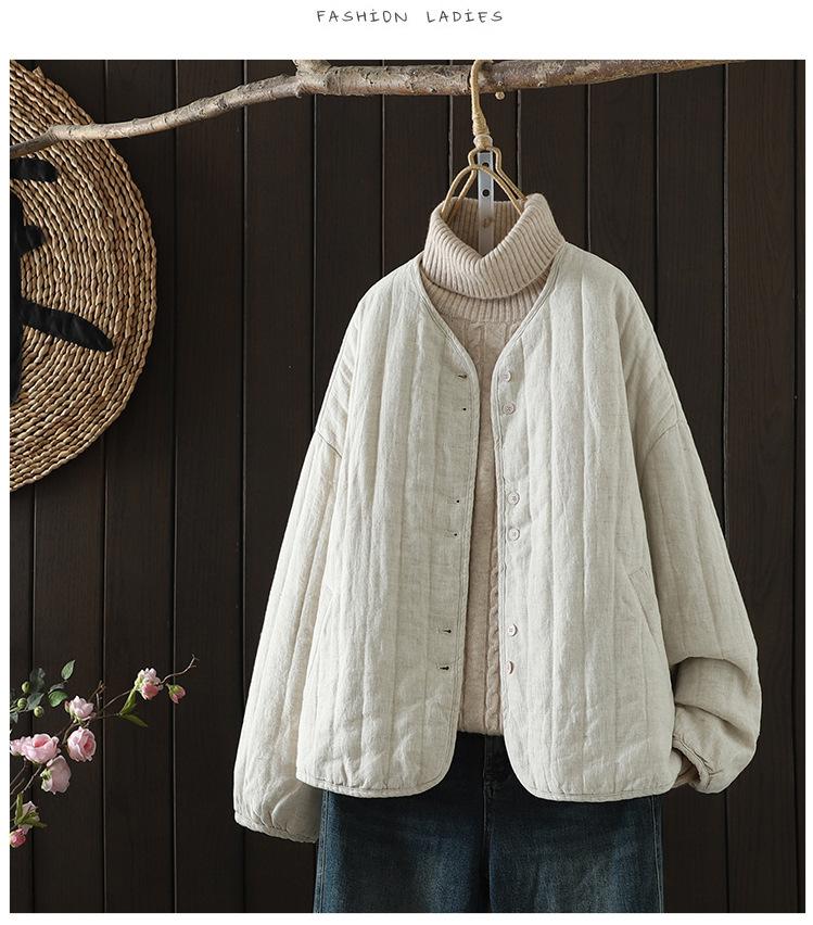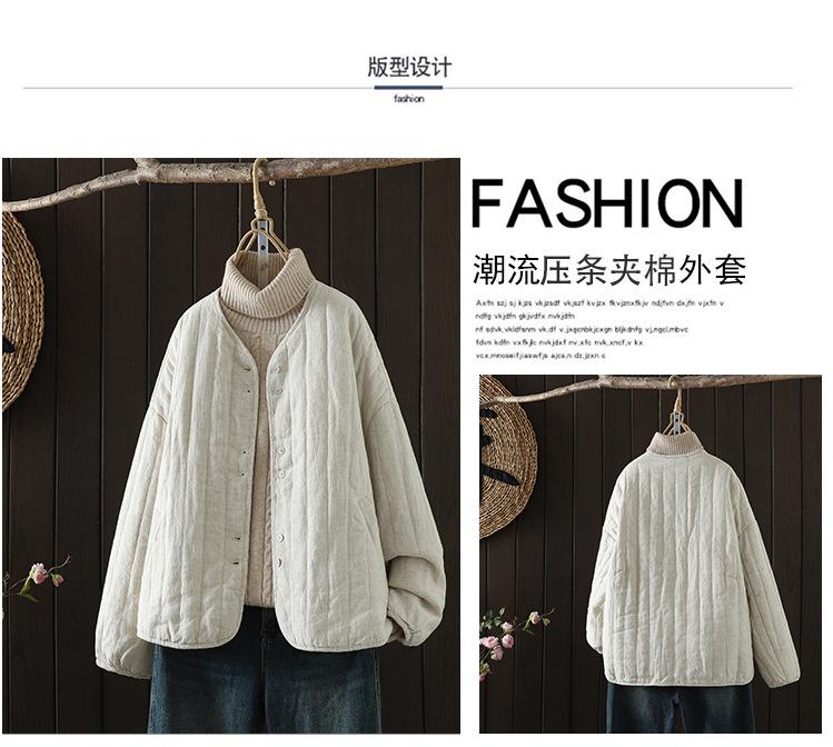 2023 Nuevo abrigo elegante de color sólido que reduce la edad, con costuras de personalidad versátil y holgado casual, acolchado de algodón para mujer, abrigo acolchado de algodón de un solo botón