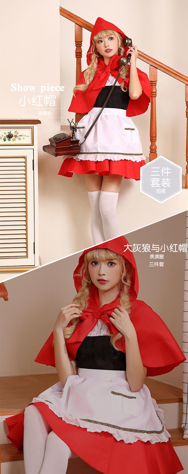 Disfraz de Fiesta de Halloween Lobo Feroz y Caperucita Roja Disfraz de Actuación Vestido Corto Set de Tres Piezas Japón Amazon Venta Caliente