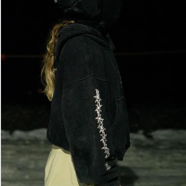 Amazon Otoño e Invierno Nuevo Estilo Europeo y Americano Estampado Forro Polar Perforado en Caliente Personalidad Calle Casual Cremallera con Capucha Jersey Sudadera
